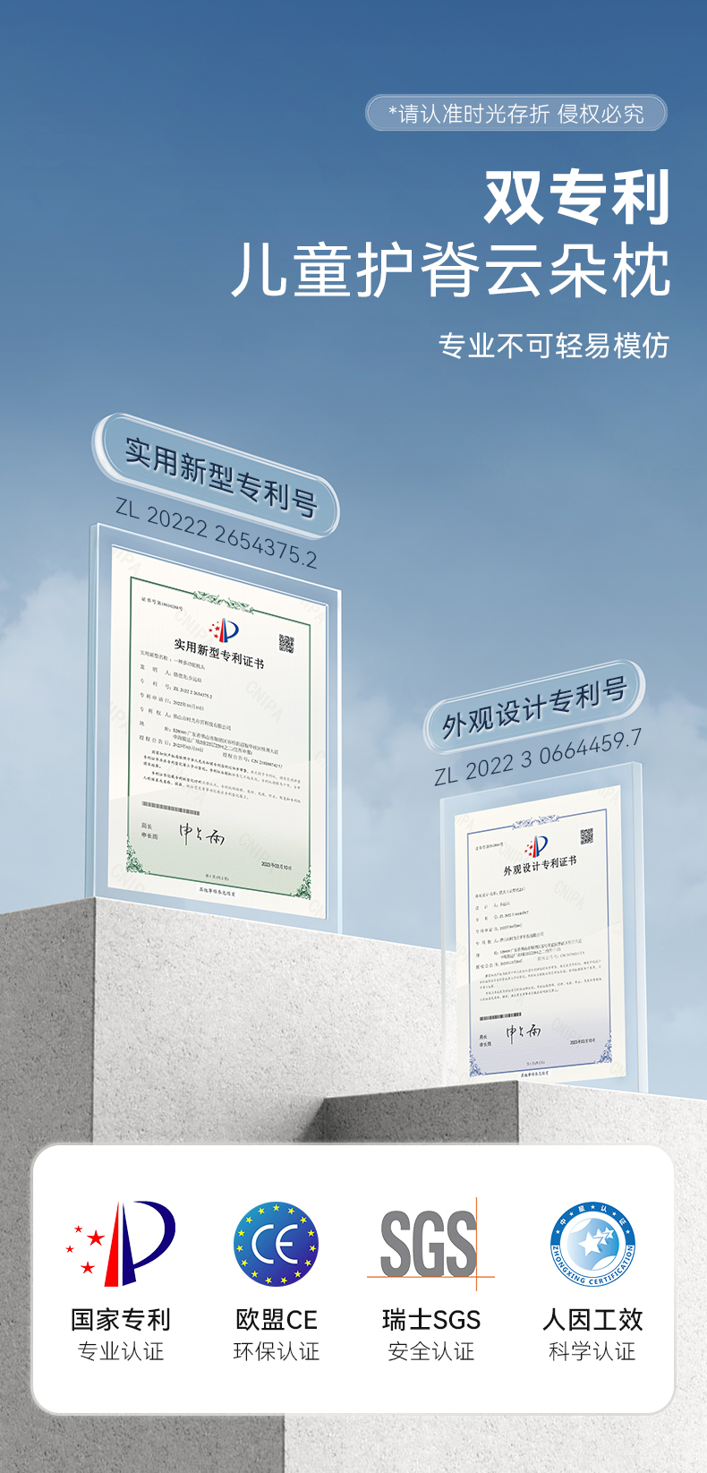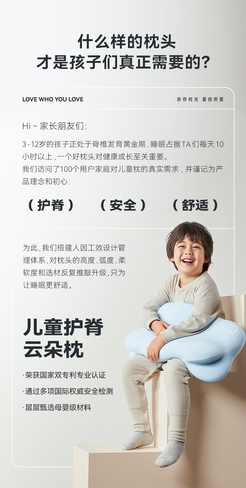时光存折云朵儿童枕护脊护颈枕透气宝宝枕头