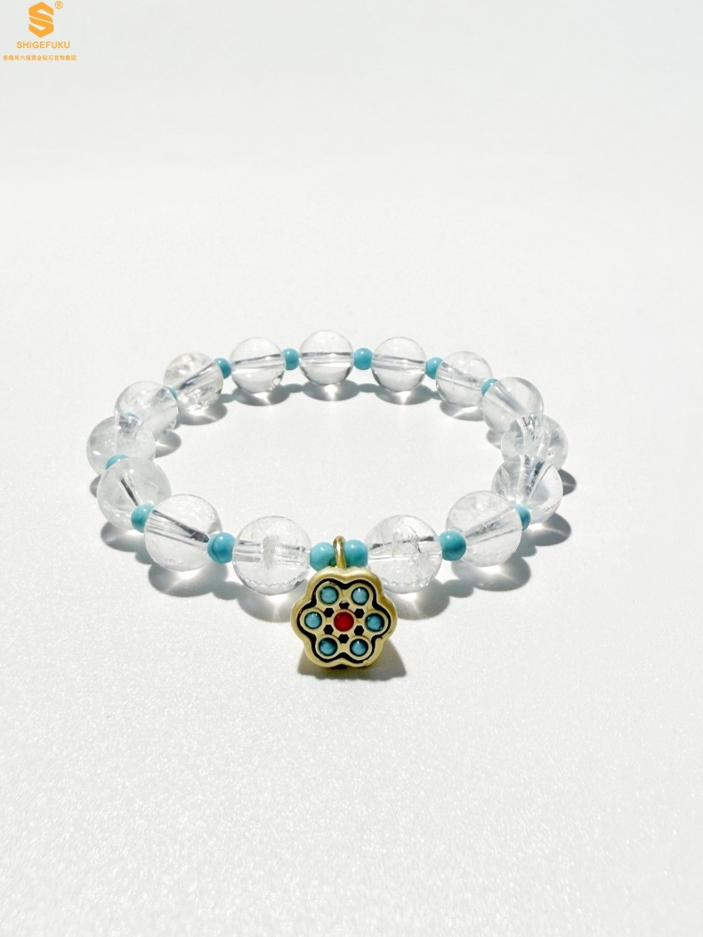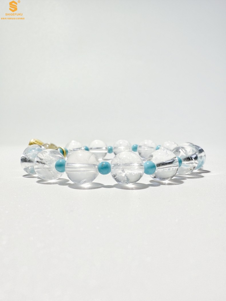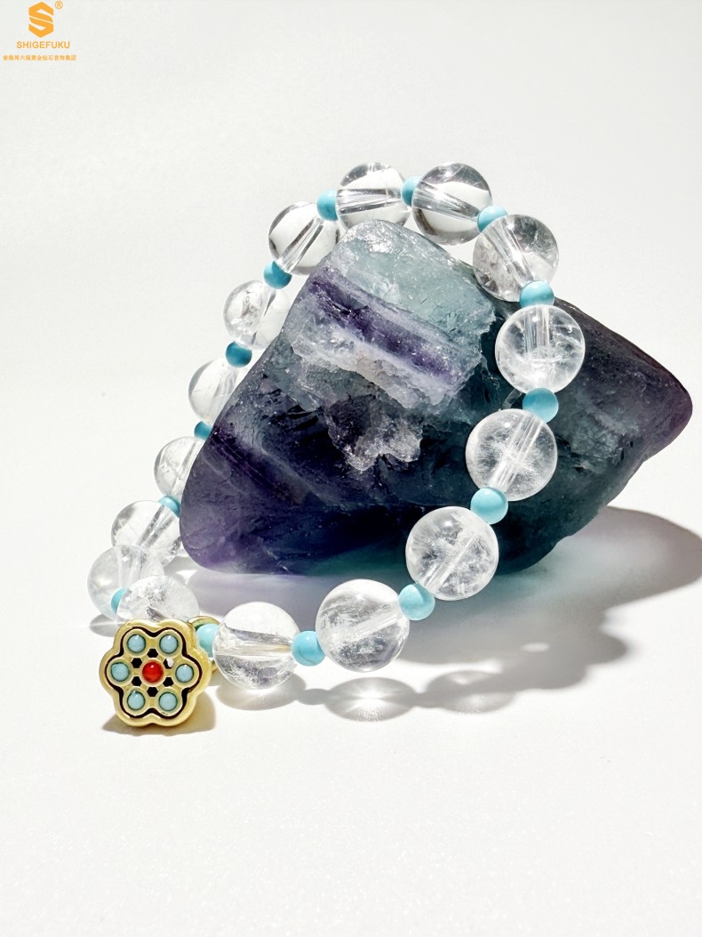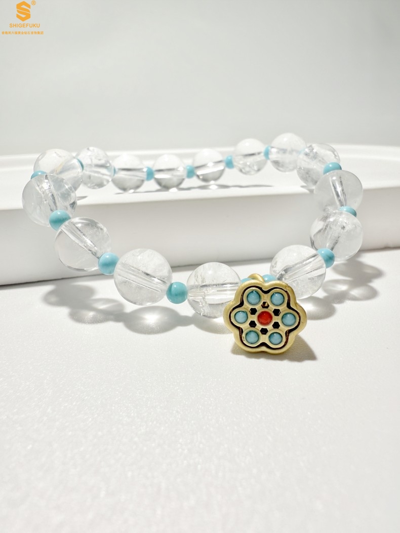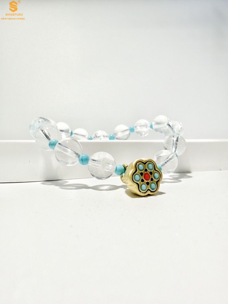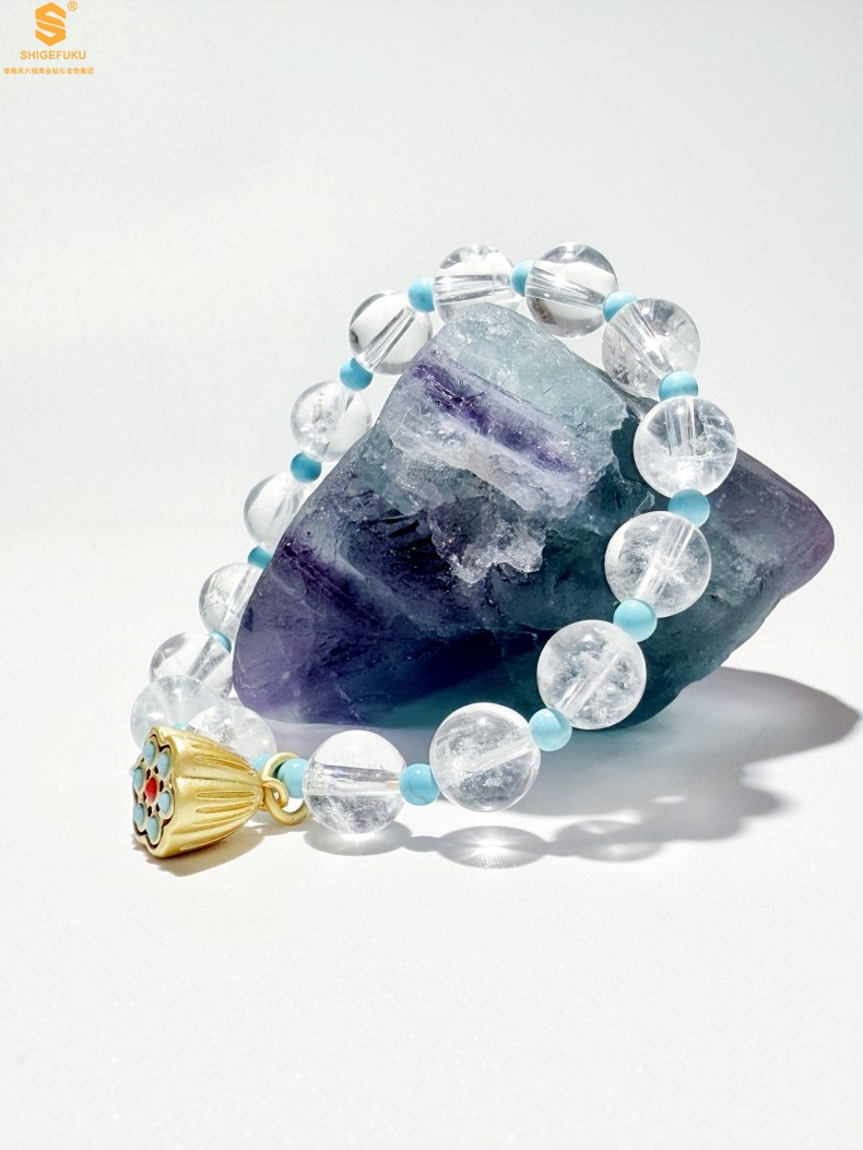 【品名】原创「莲澈」新中式国风白水晶绿松石好运莲莲手串