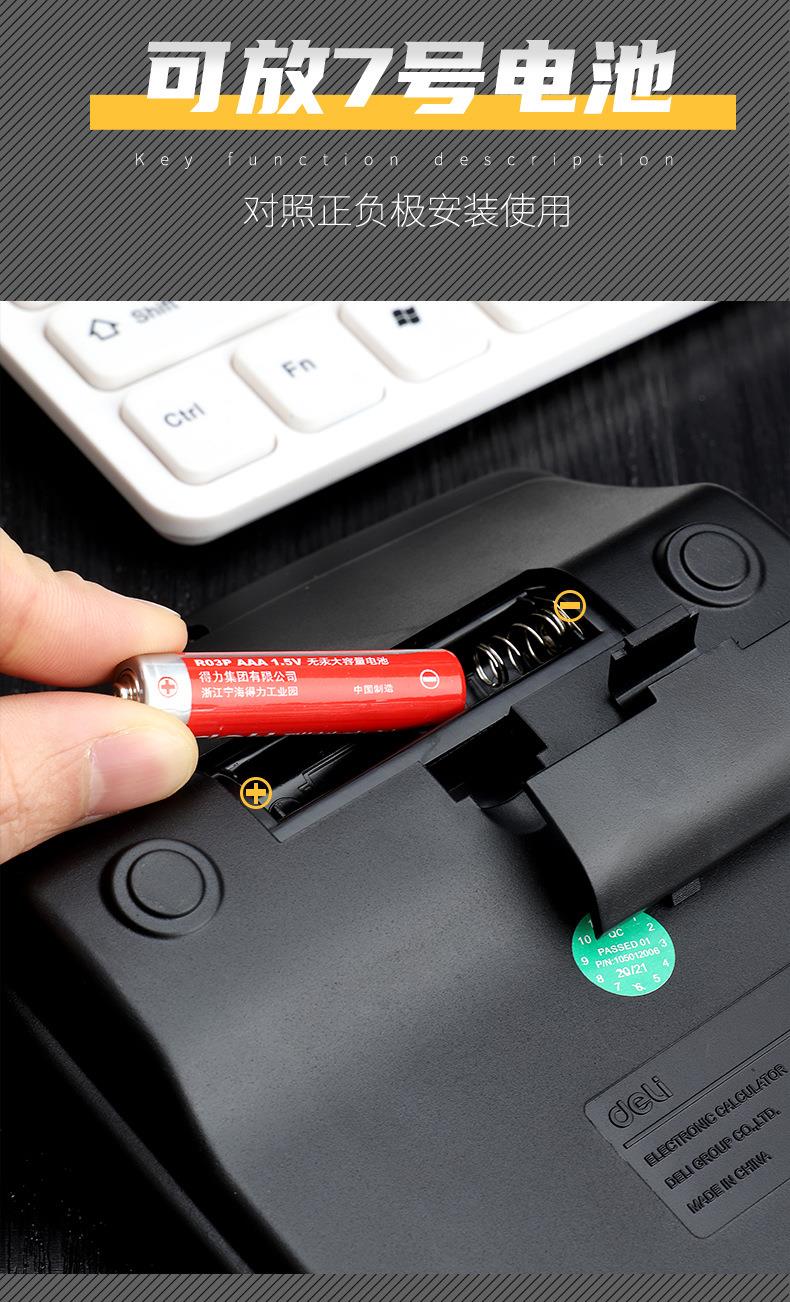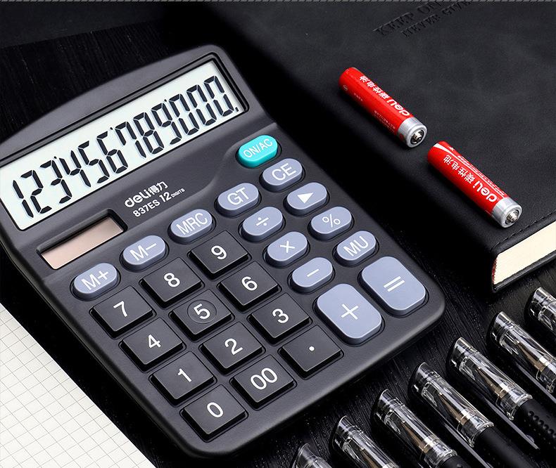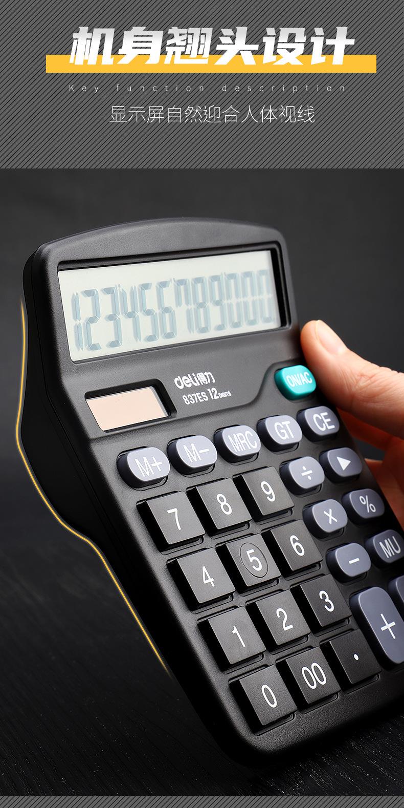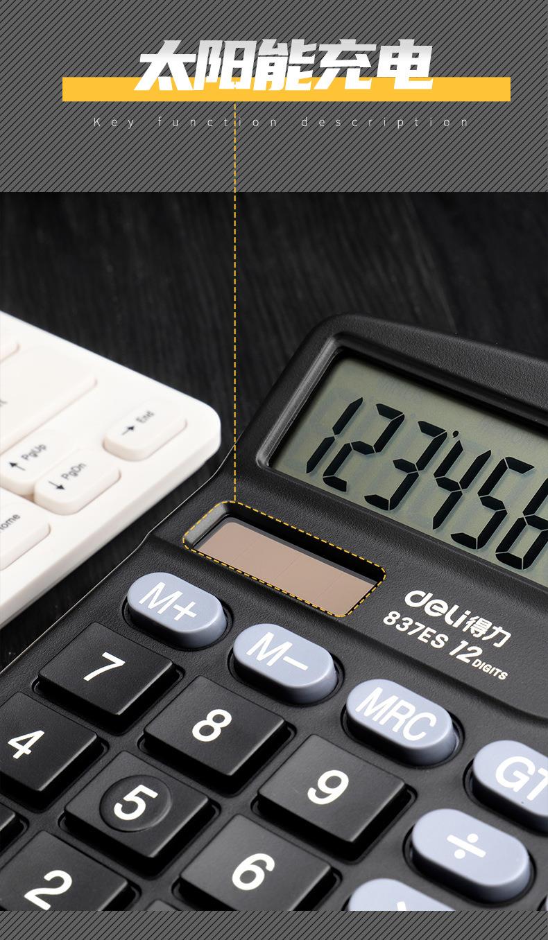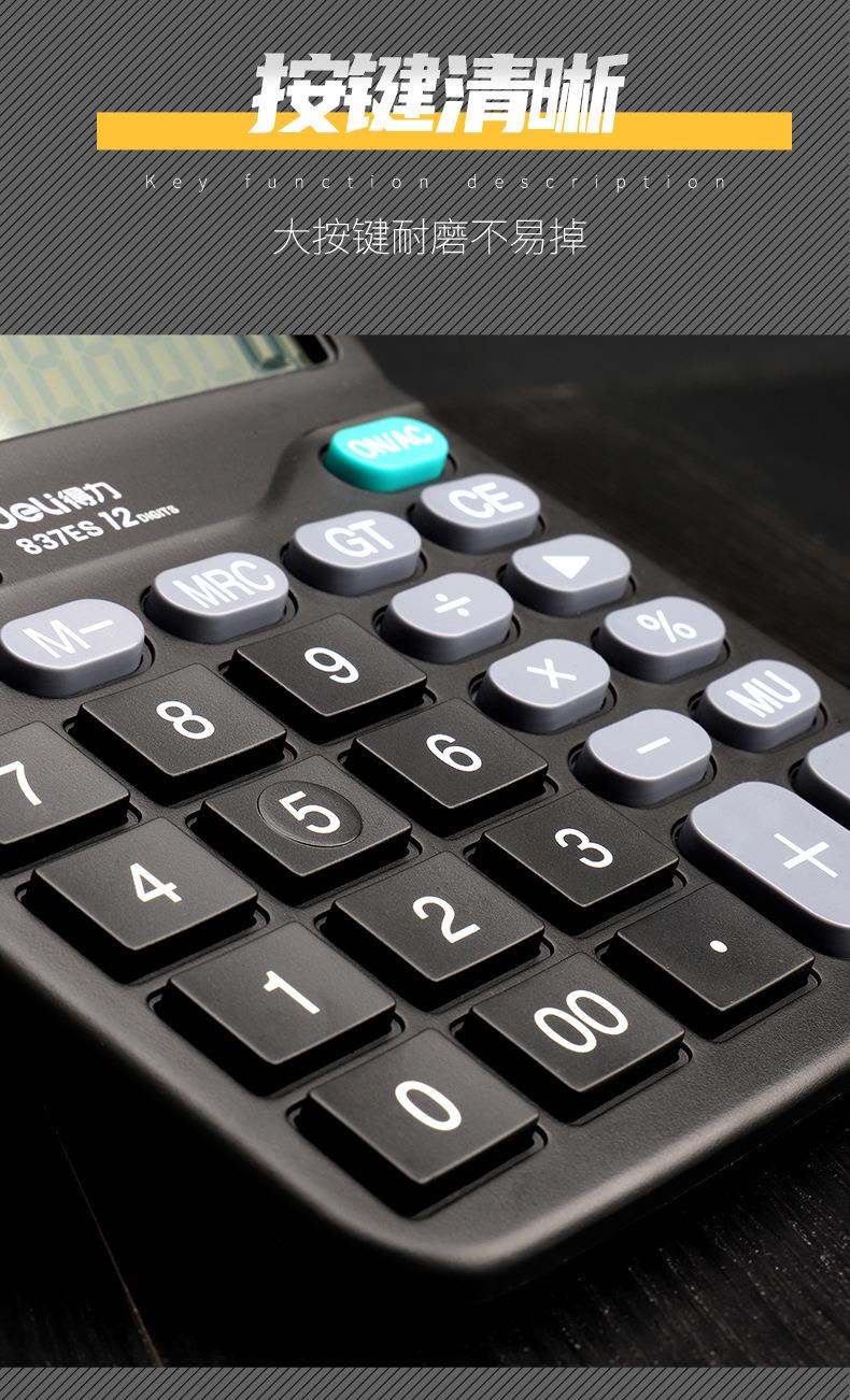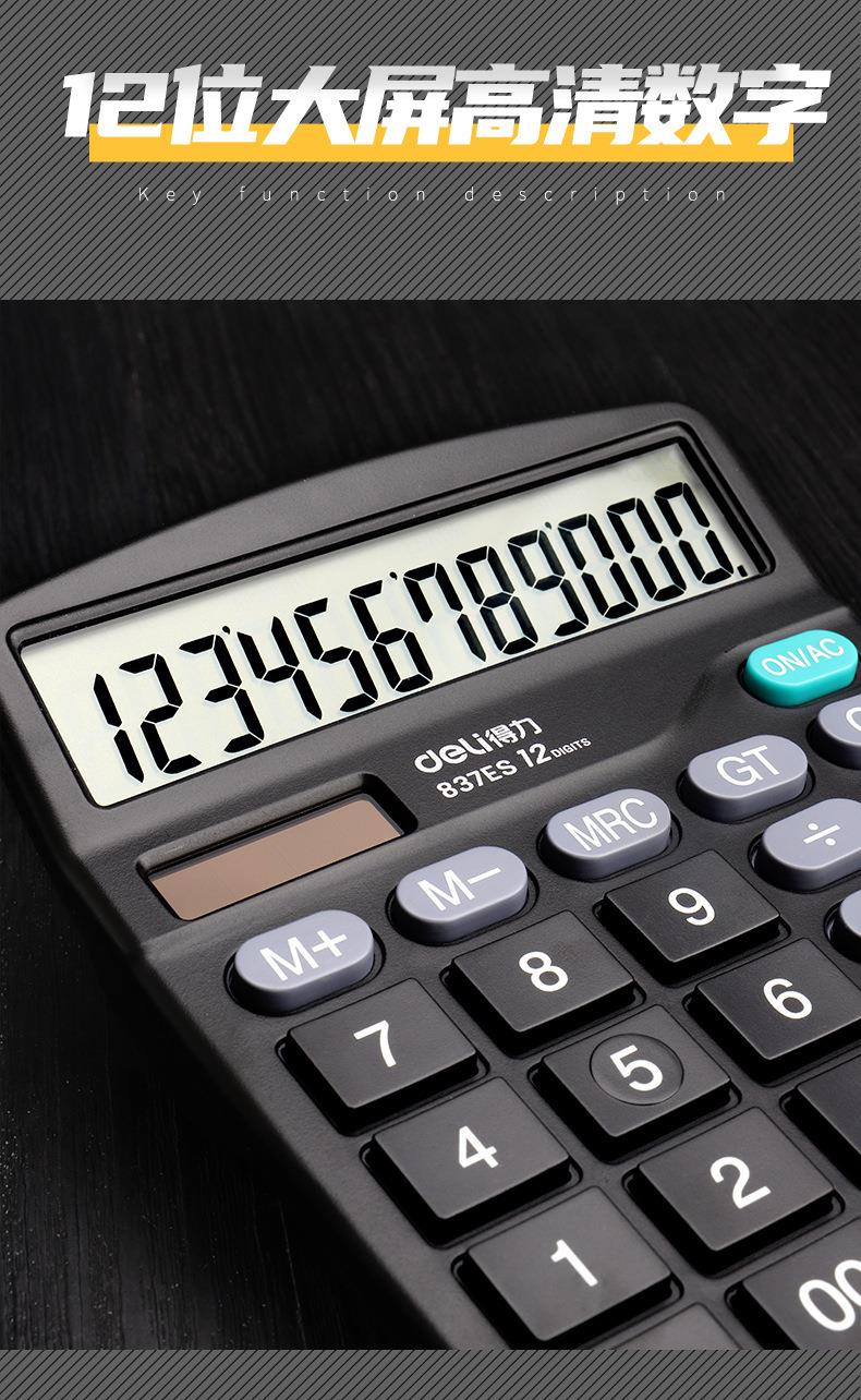 得力837ES计算器学生财务会计办公用大屏幕太阳能双电源计算机