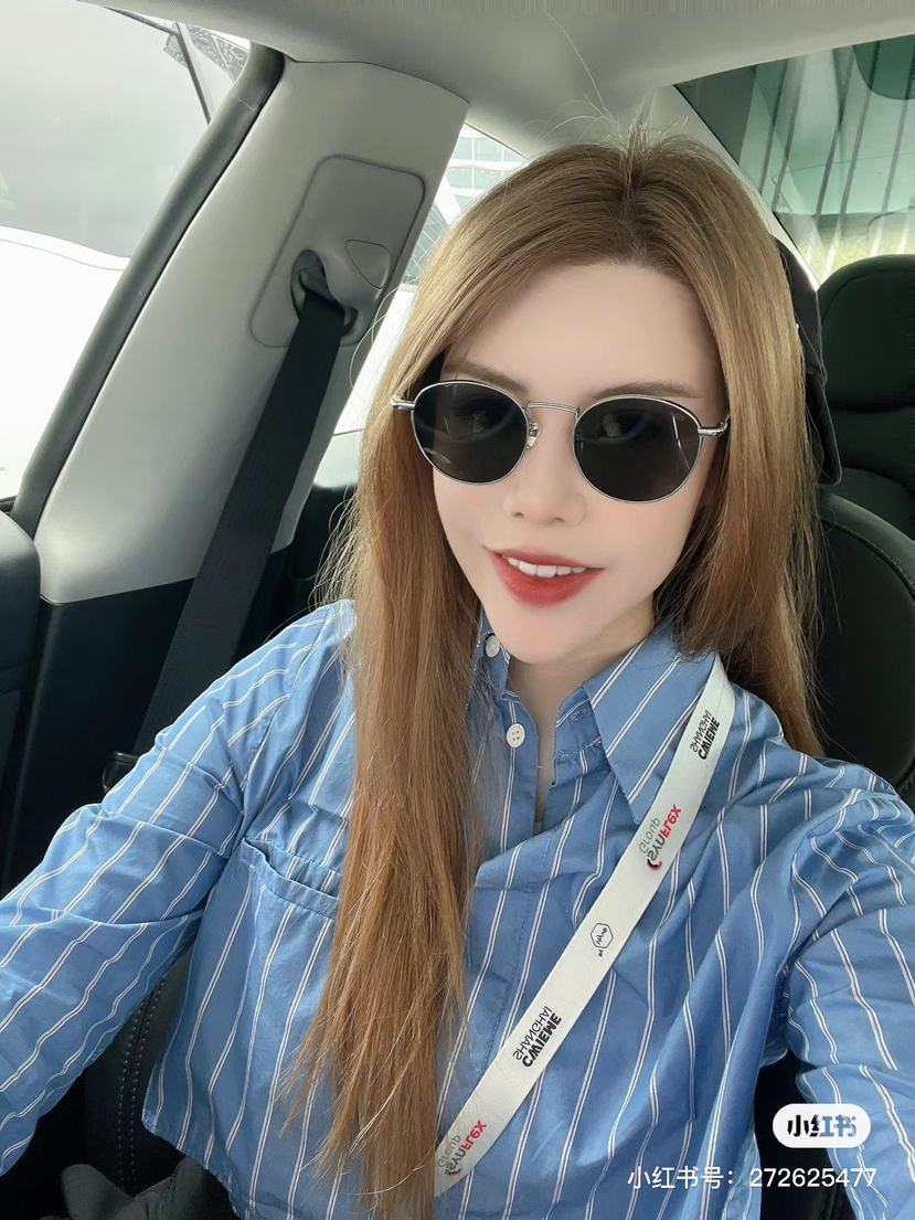 室内不暗,室外不晒,搭配度高,眼镜盒收纳也很方便。就是完全不会接的是个负担的墨镜。这个版型修饰脸型一级棒👍显脸小又时髦。