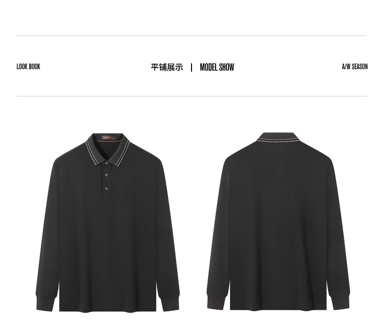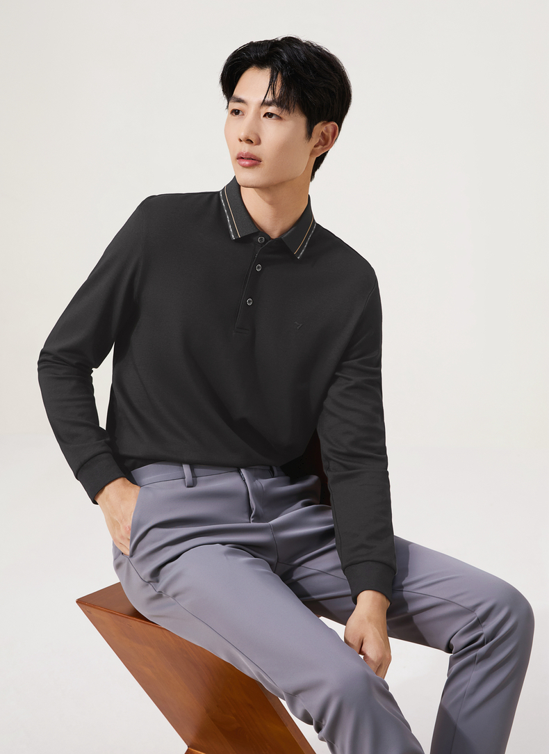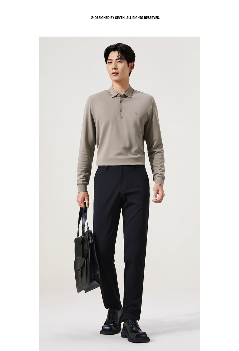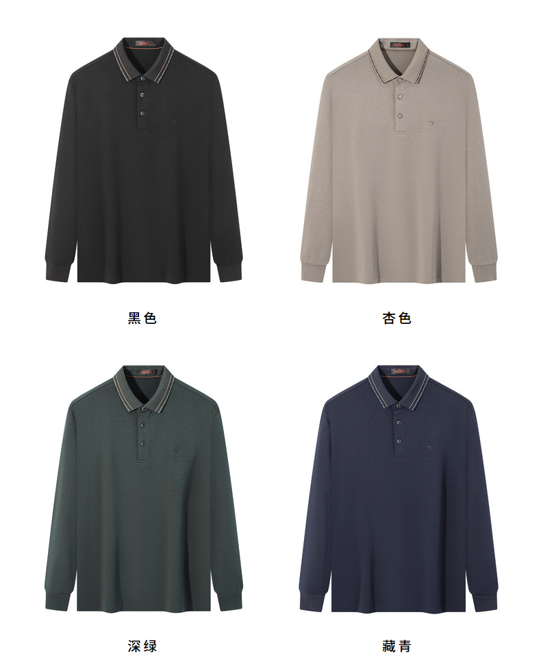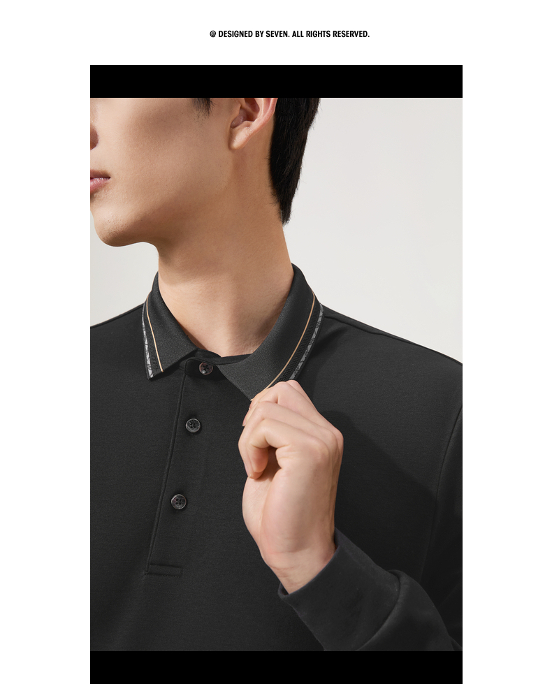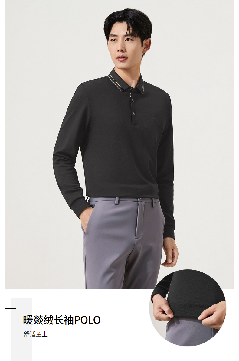 【暖燚绒/不变型领】柒牌长袖POLO衫男装秋冬季保暖翻领上衣T恤129T70370