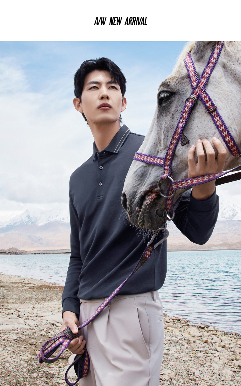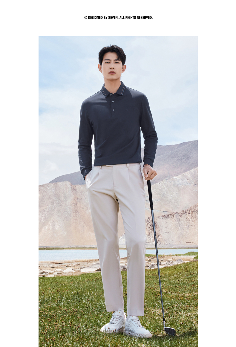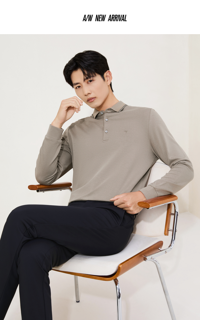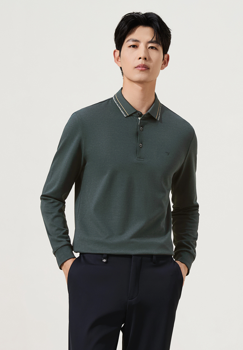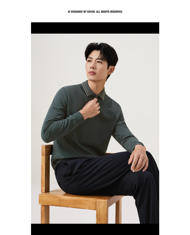 【暖燚绒/不变型领】柒牌长袖POLO衫男装秋冬季保暖翻领上衣T恤129T70370