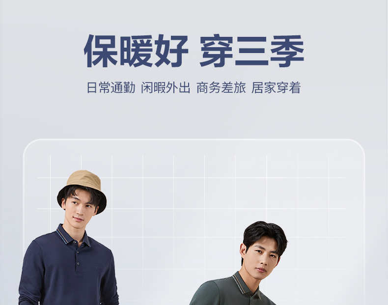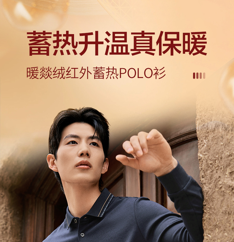 【暖暖绒/不变型领】柒牌长袖POLO衫男装秋冬季保暖翻领上衣T恤129T70370