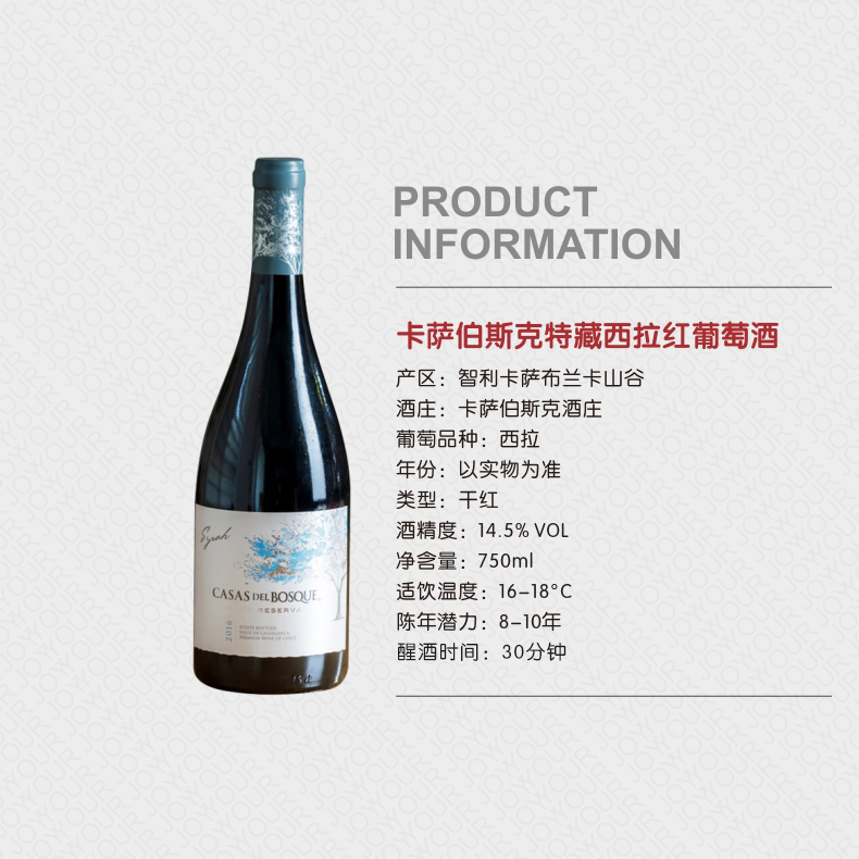 智利CASAS DEL BOSQUE特藏西拉红葡萄酒