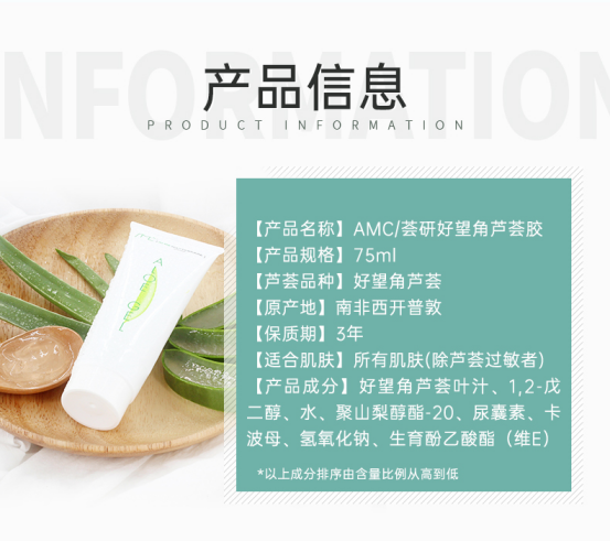 【成分安全】AMC遵从极简护肤,产品不含防腐剂,不含酒精,不含香精,让产品回归自然状态,铸造天然肌肤。 漫山遍野的好望角芦荟,根本无需人工种植,让大自然去做荟农