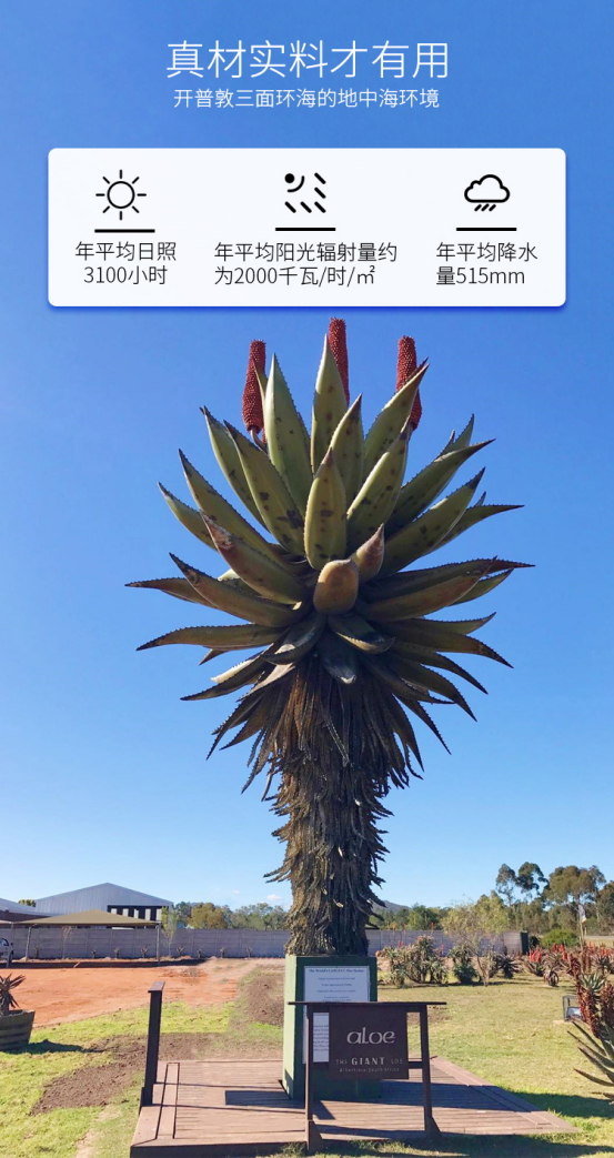 【原料天然】全部都是野生芦荟树上采摘的,并且无任何人工种植,人为污染,以南非得天独厚的天然环境,不存在重金属污染~
