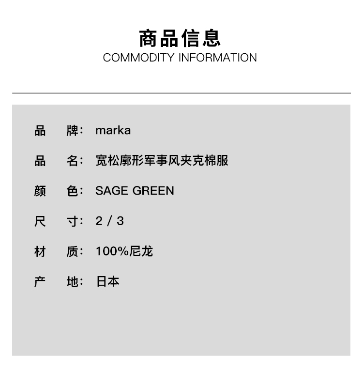 marka MA-1 宽松廓形军事风夹克棉服 棒球领外套