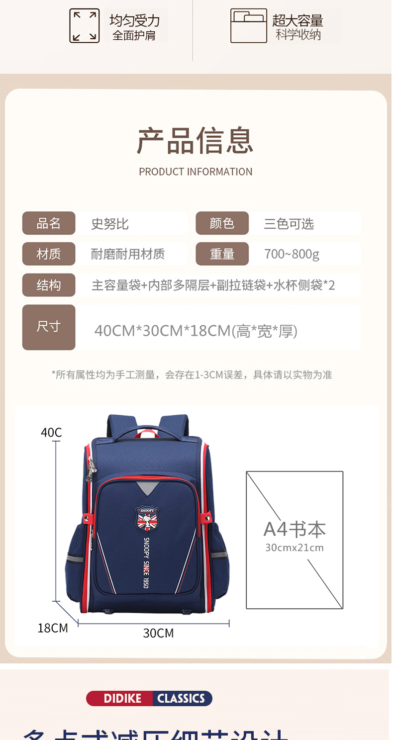 史努比小学生书包一到二年级护脊三到六年级男生男孩儿童女生童