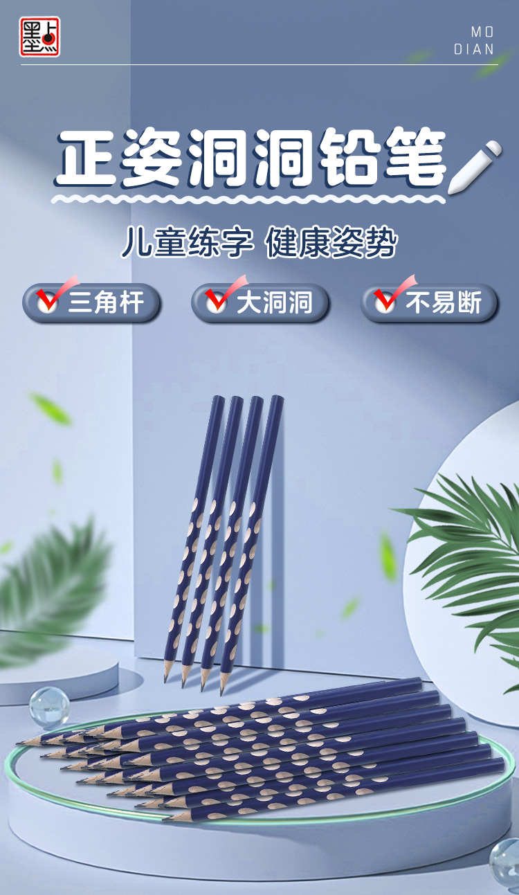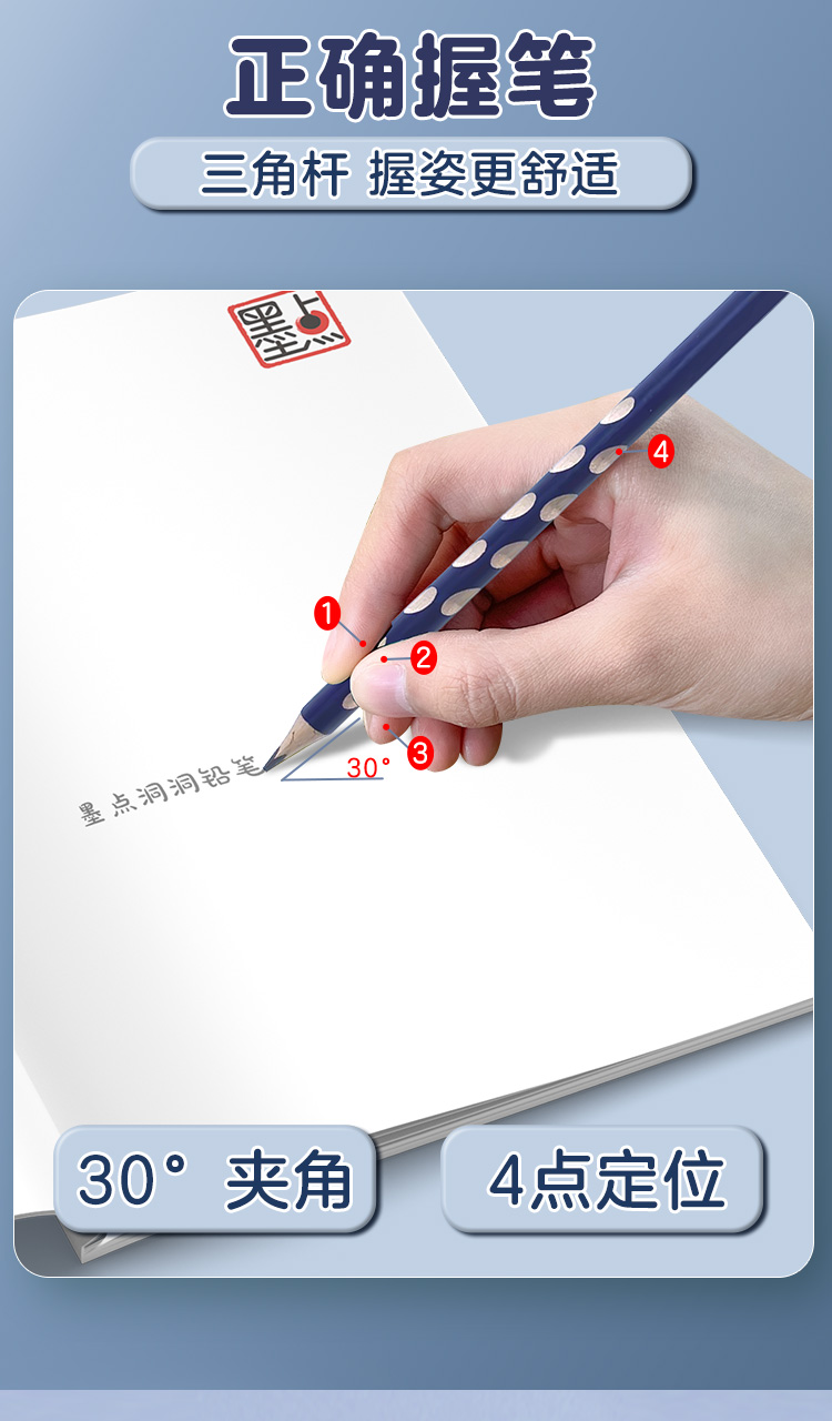 洞洞铅笔小学生专用一二年级儿童无毒安全铅笔HB三角杆矫正握姿幼儿园初学者练字考试专用笔涂色涂卡橡皮文具