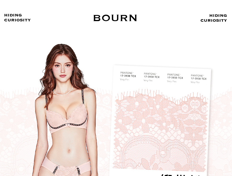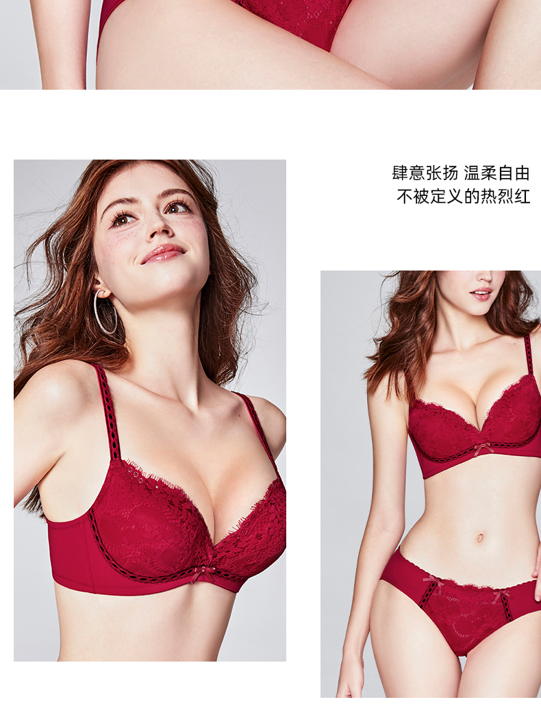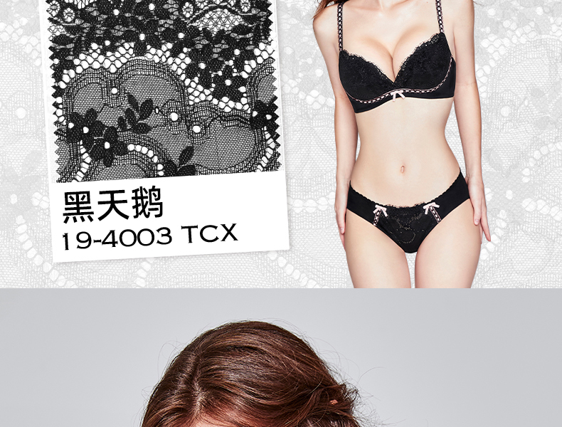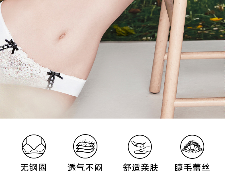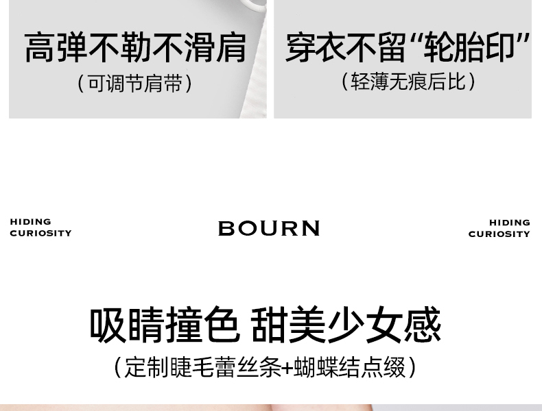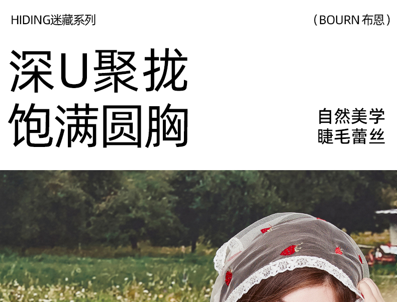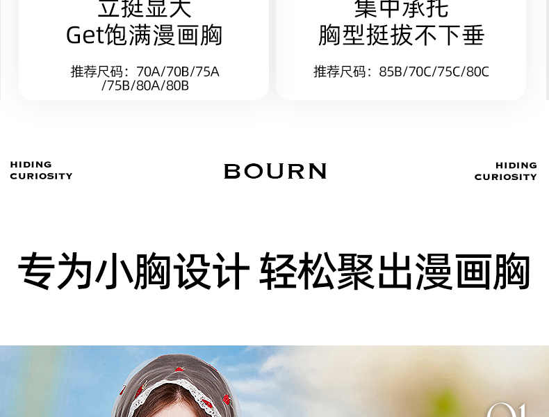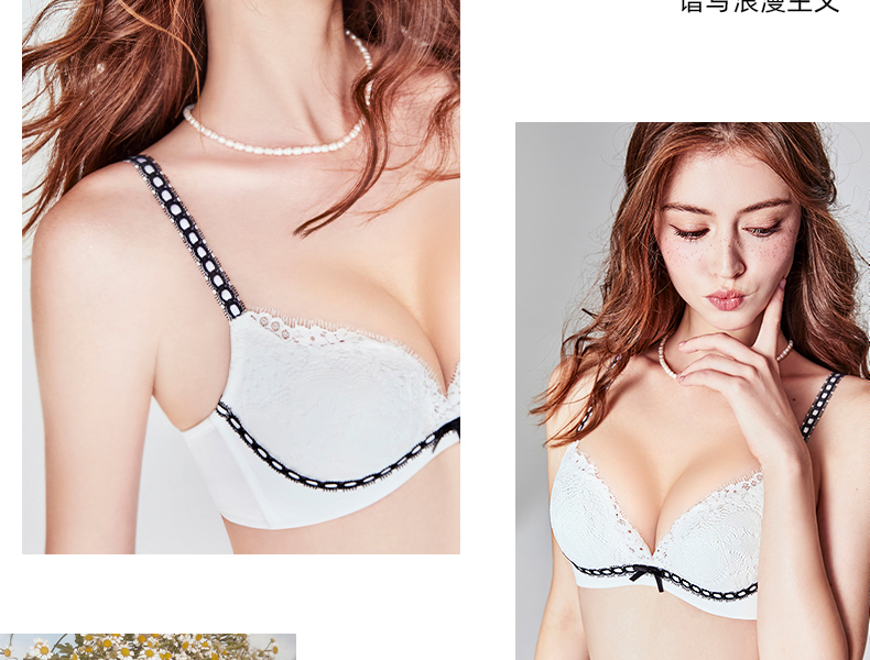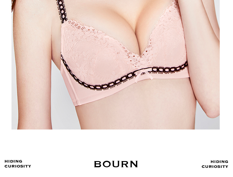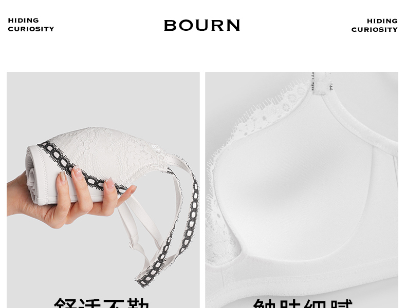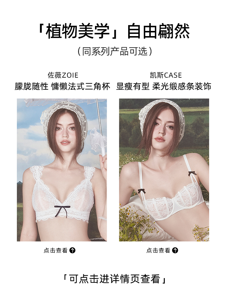 好奇蜜斯小胸聚拢内衣女显大蕾丝无钢圈文胸罩套装夏薄法式防下垂-Bourn 布恩