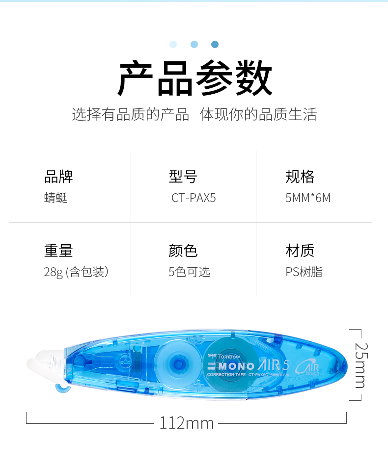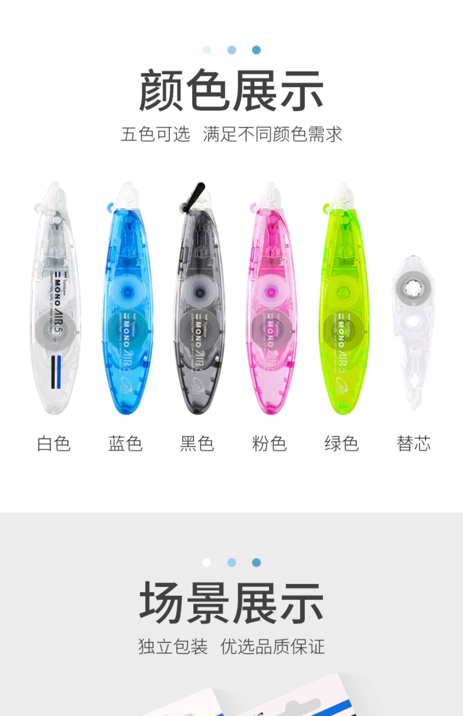 tombow蜻蜓笔式5mm*6m MONO AIR笔形修正带mono涂改带实惠装大容量彩色改正改字带可替换芯学生用