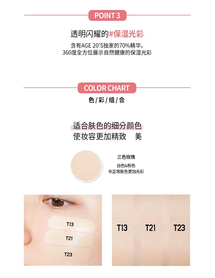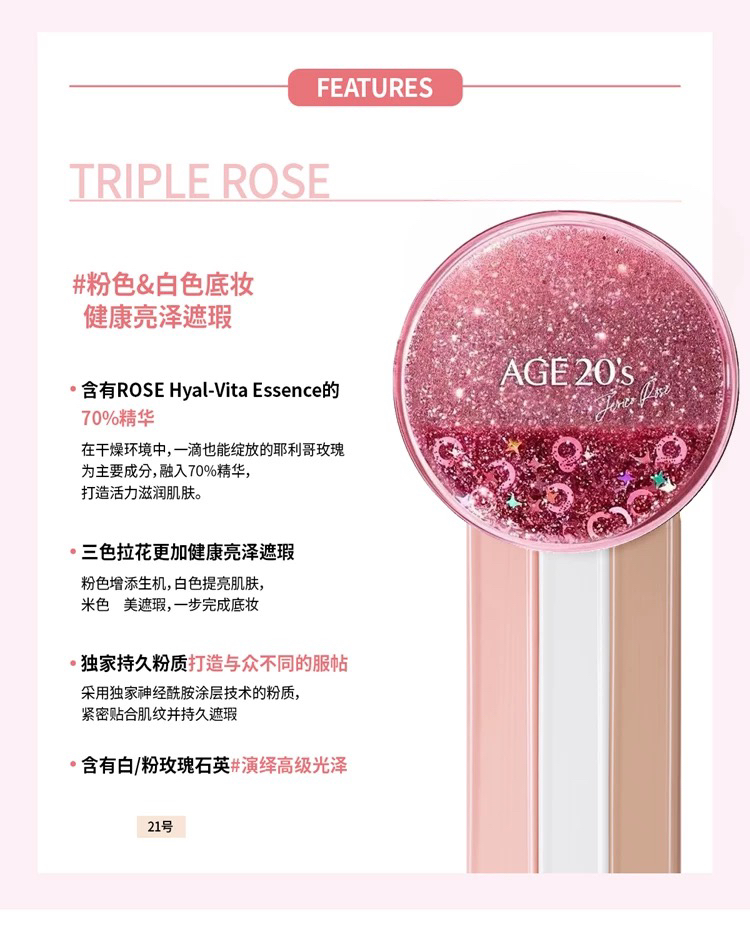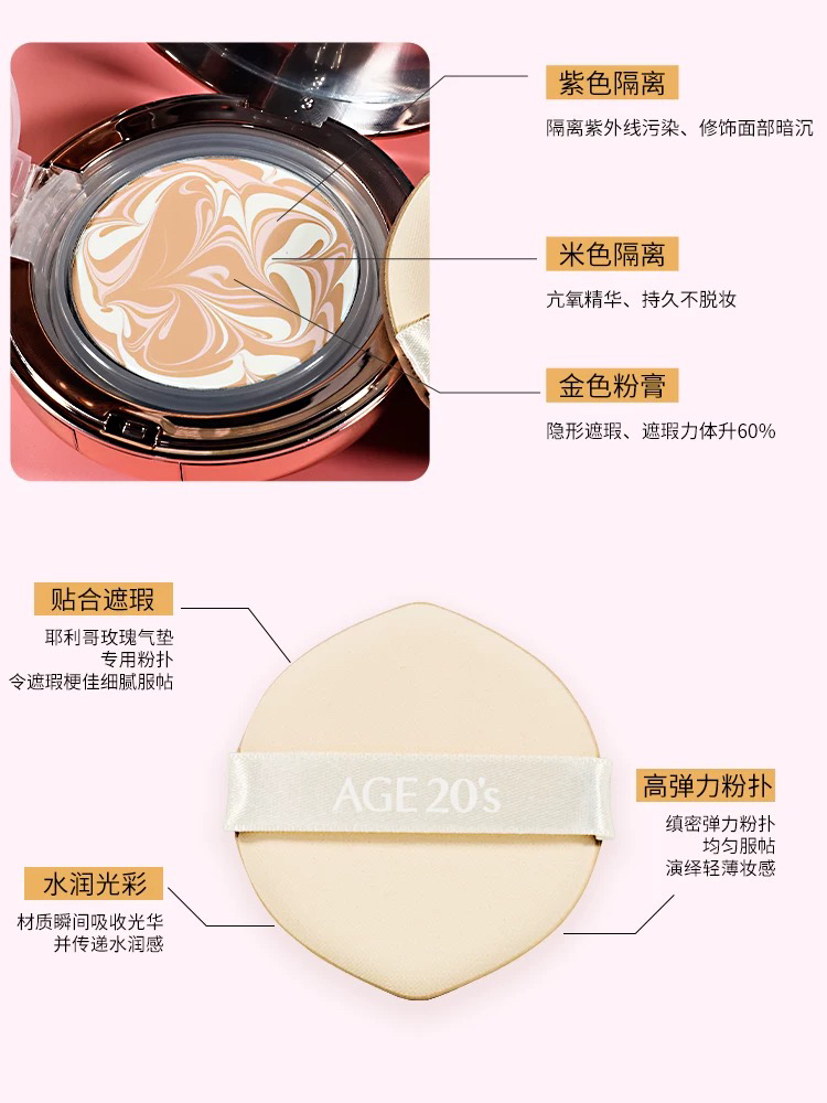韩国 Age20s爱敬 流沙耶利哥玫瑰三色拉花气垫 SPF50+/PA+++ (带替换装)