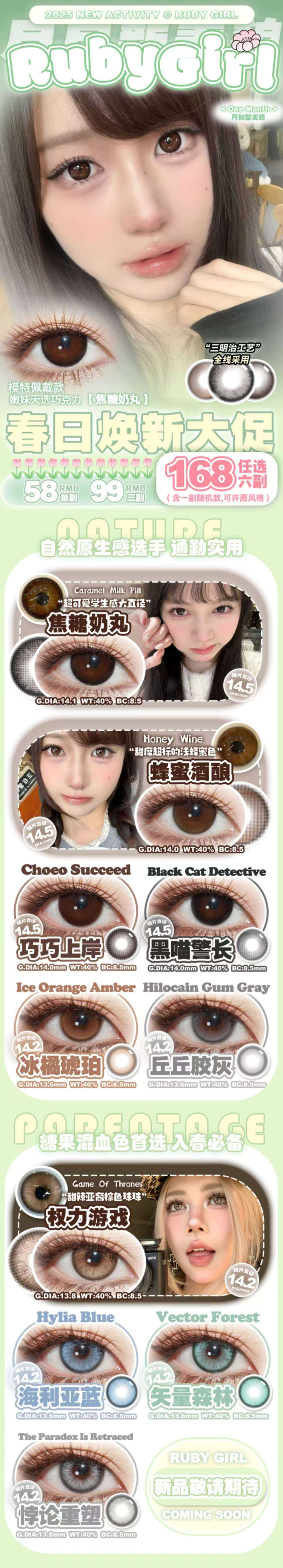 Rubygirl 月抛 活动合集【焦糖奶丸/蜂蜜酒酿/巧巧上岸/黑喵警长/冰橘琥珀/丘丘胶灰/权力游戏/海利亚蓝/矢量森林/悖论重塑】