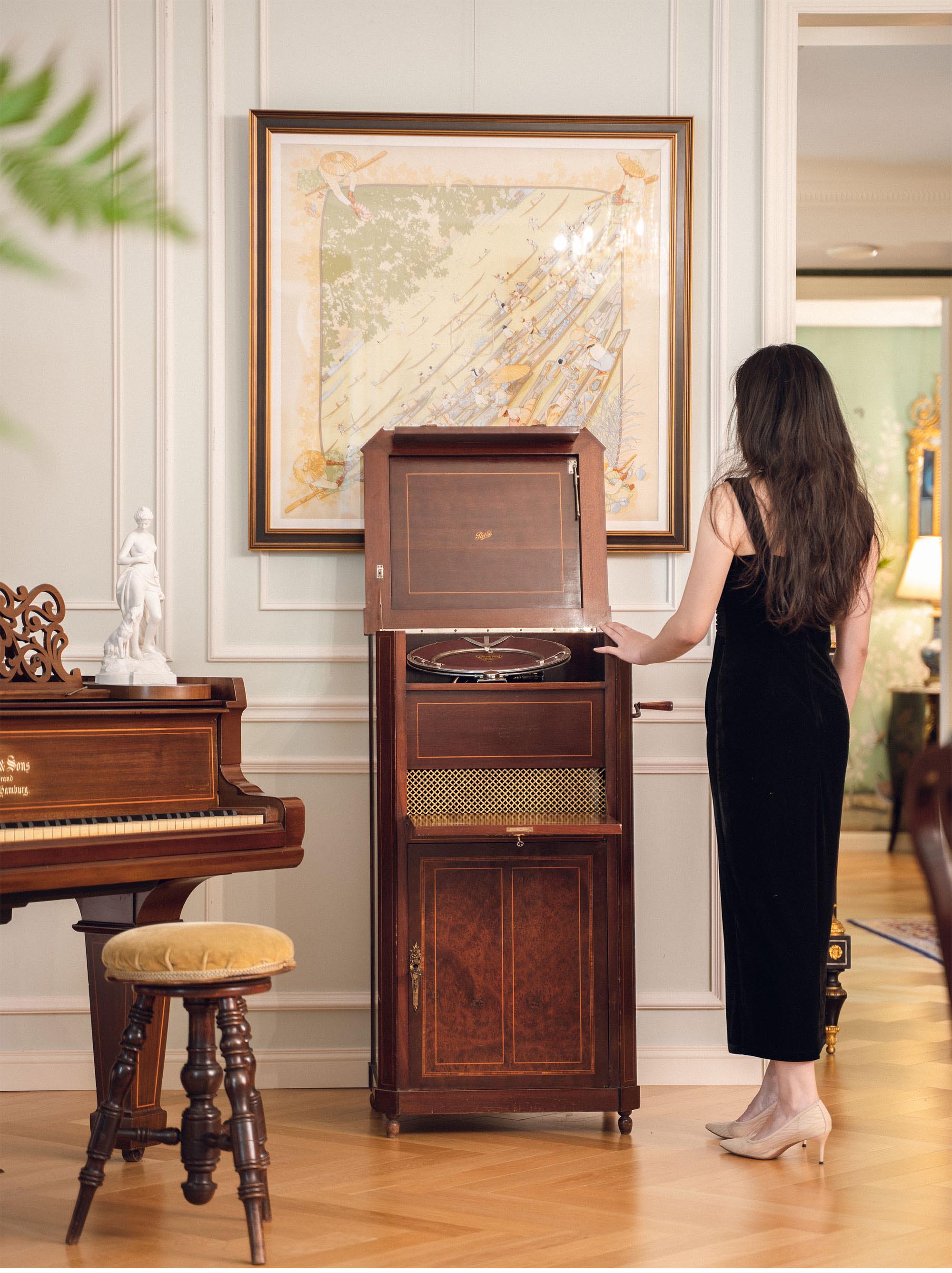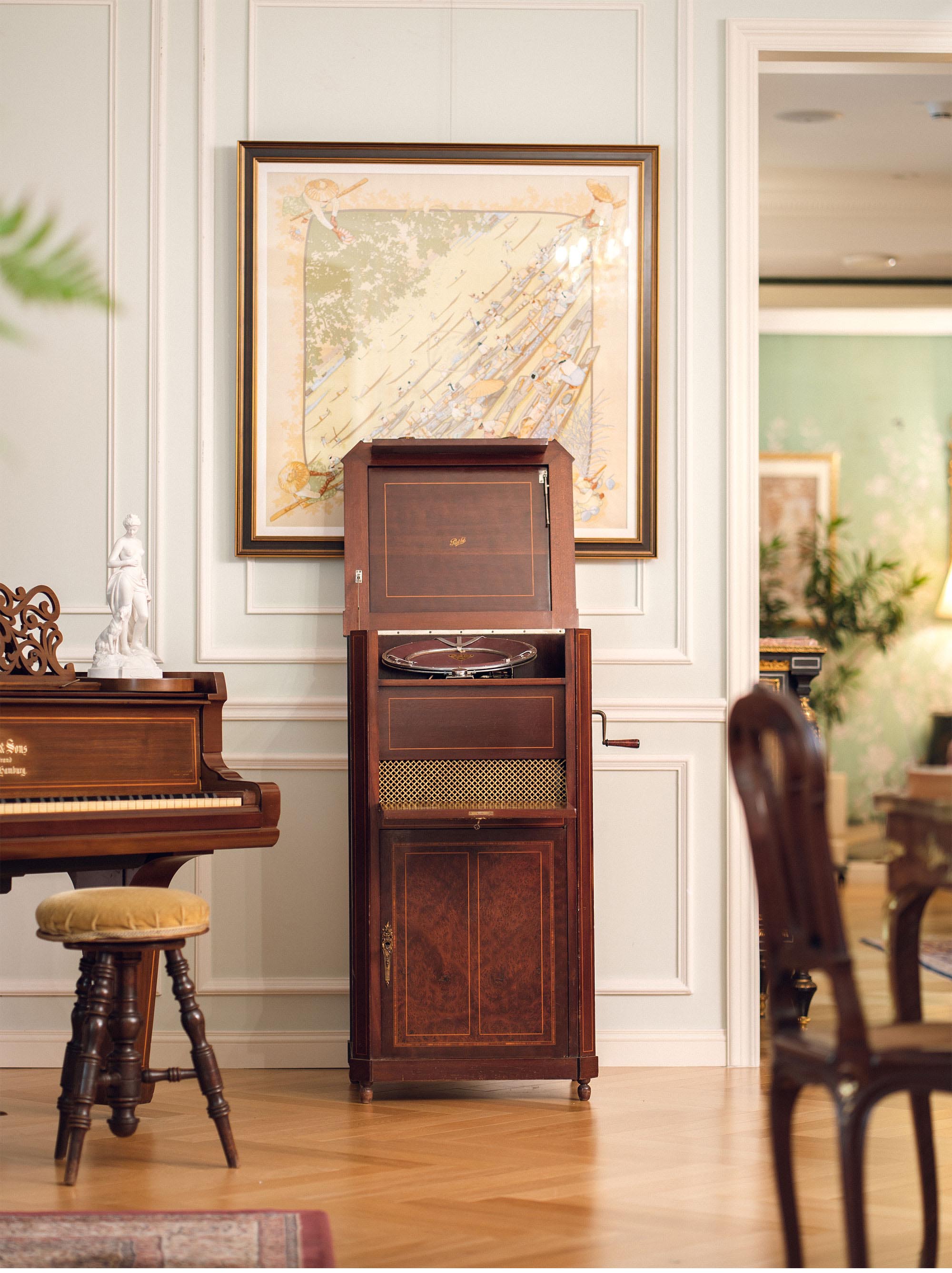 20世纪法国唱片公司百代Pathé 出品柜式落地留声机 配唱片与曲目