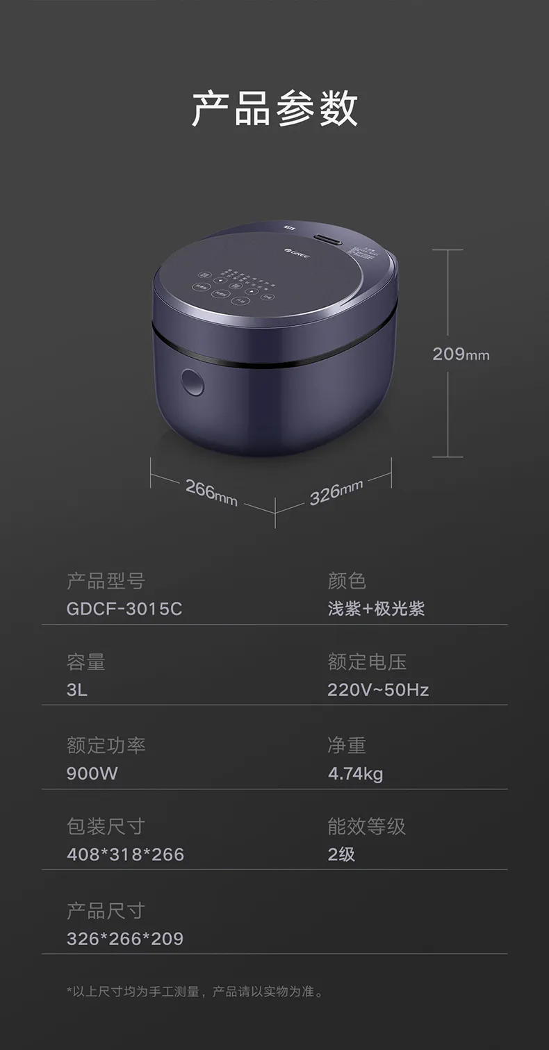格力·IH智能电饭煲 3L适用3-6人 GDCF-3015C 浅紫+极光紫