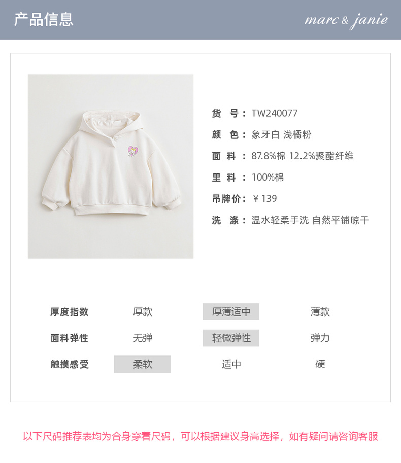 马克珍妮女童连帽卫衣儿童超舒棉宽松卡通上衣外套春装新款240077