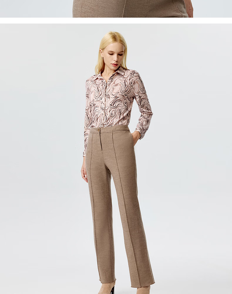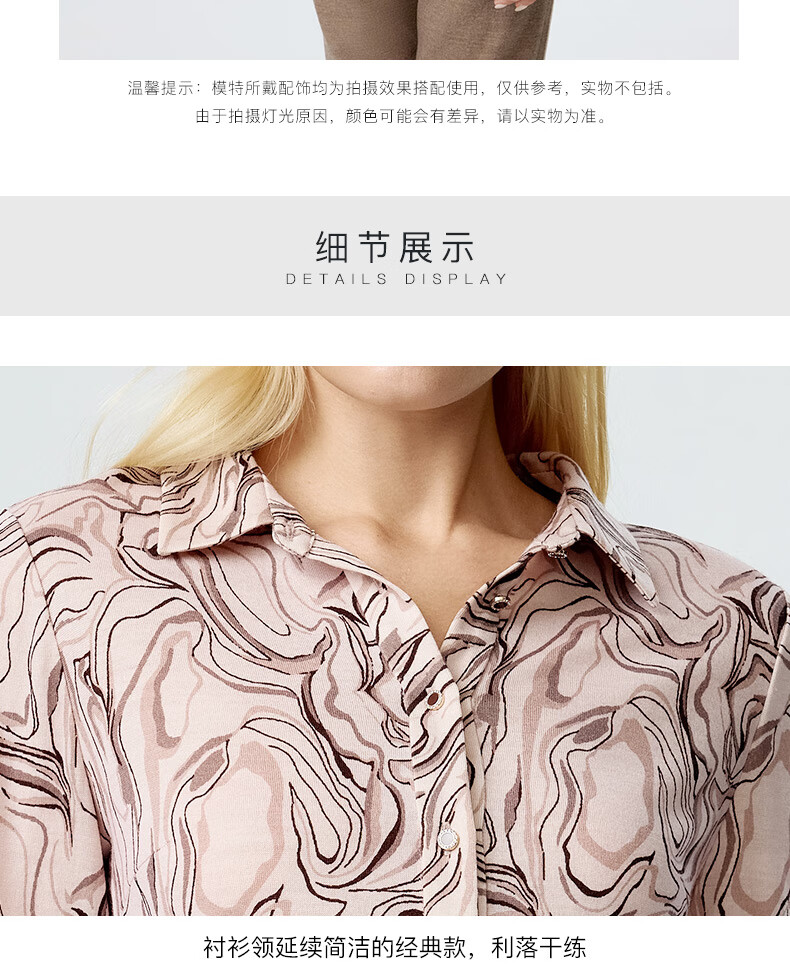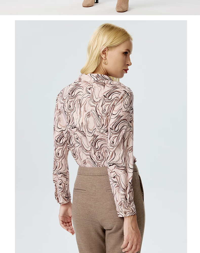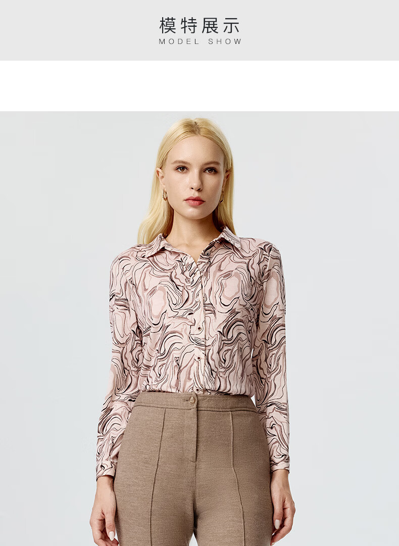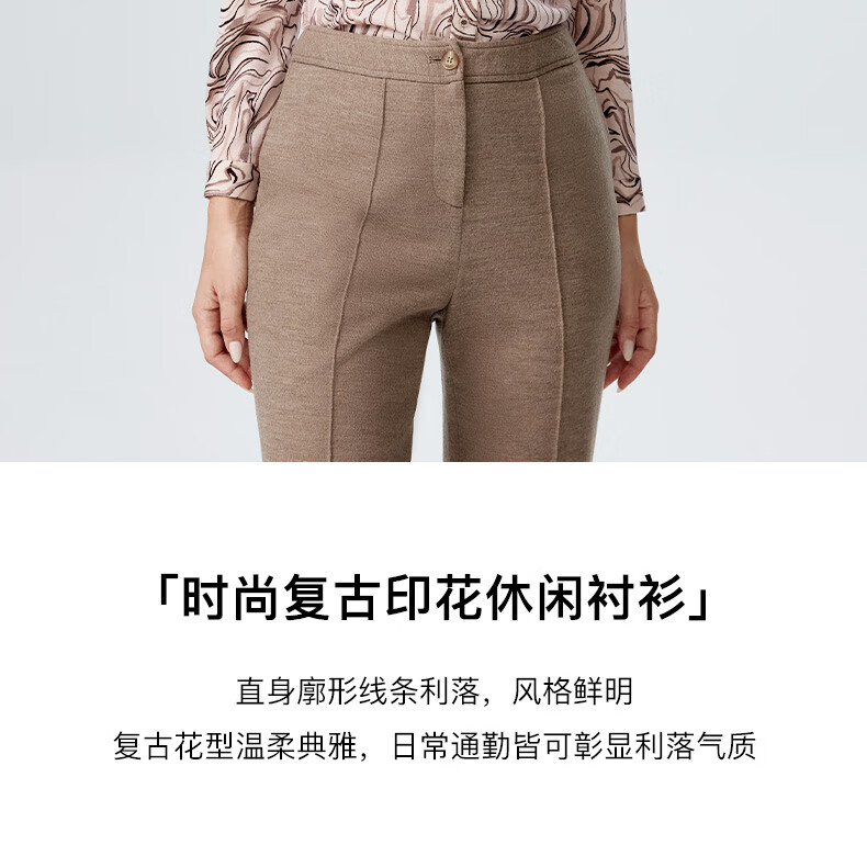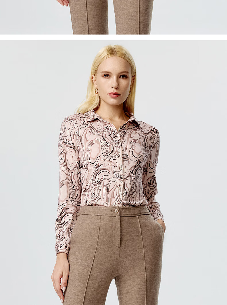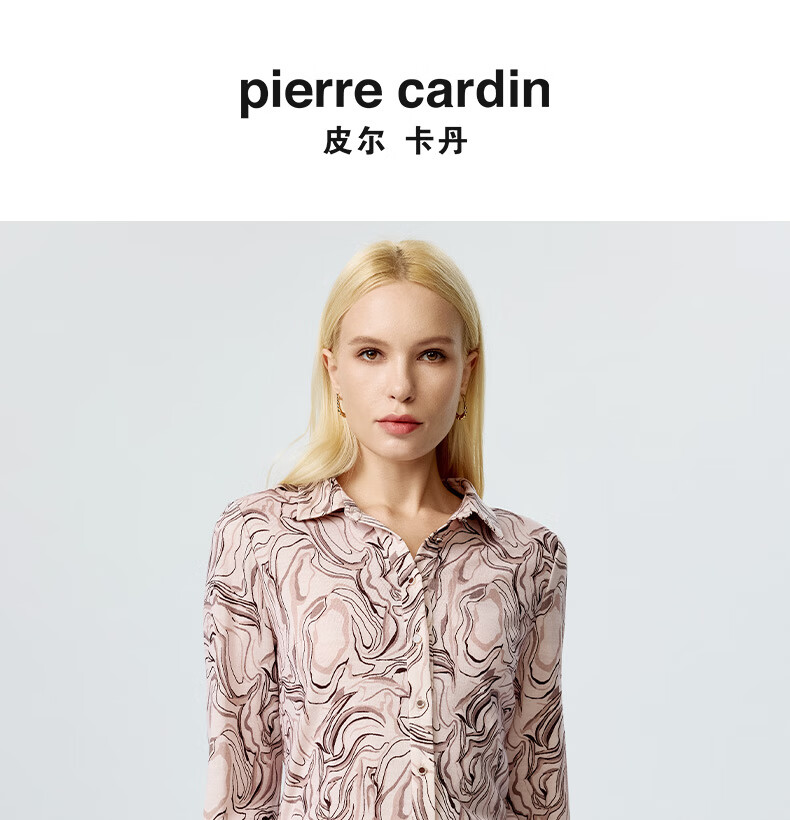 皮尔卡丹女装衬衫复古印花羊毛内搭通勤时尚上衣P3429B3963M3