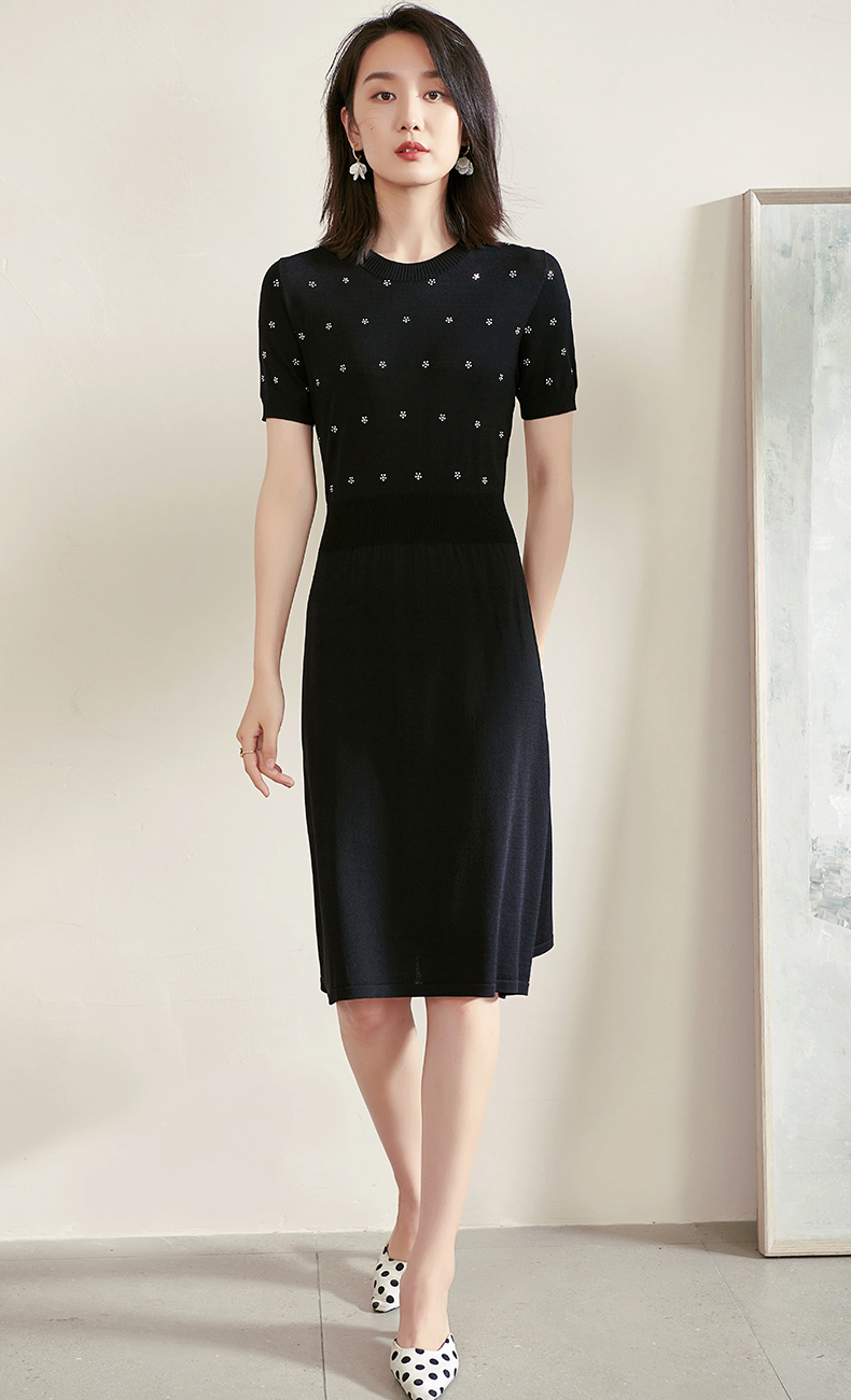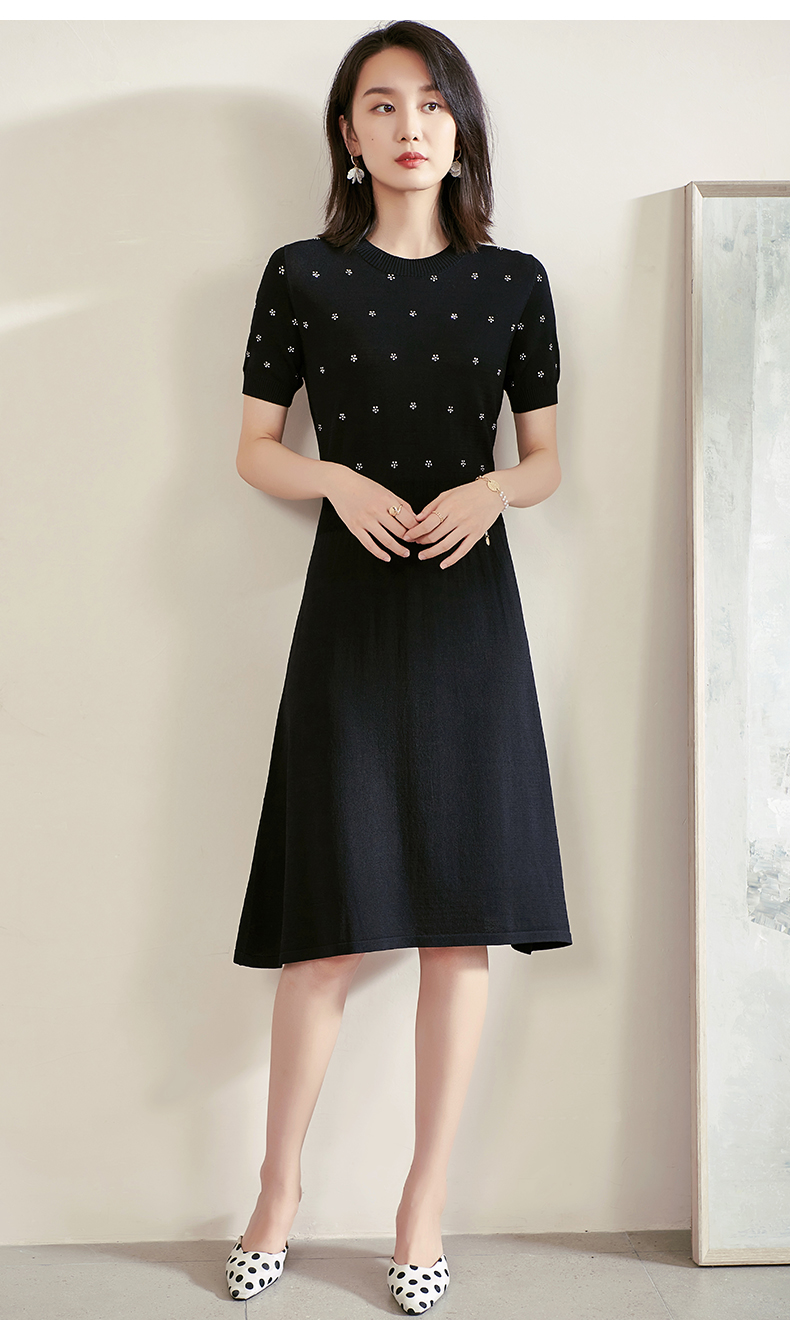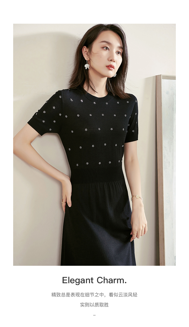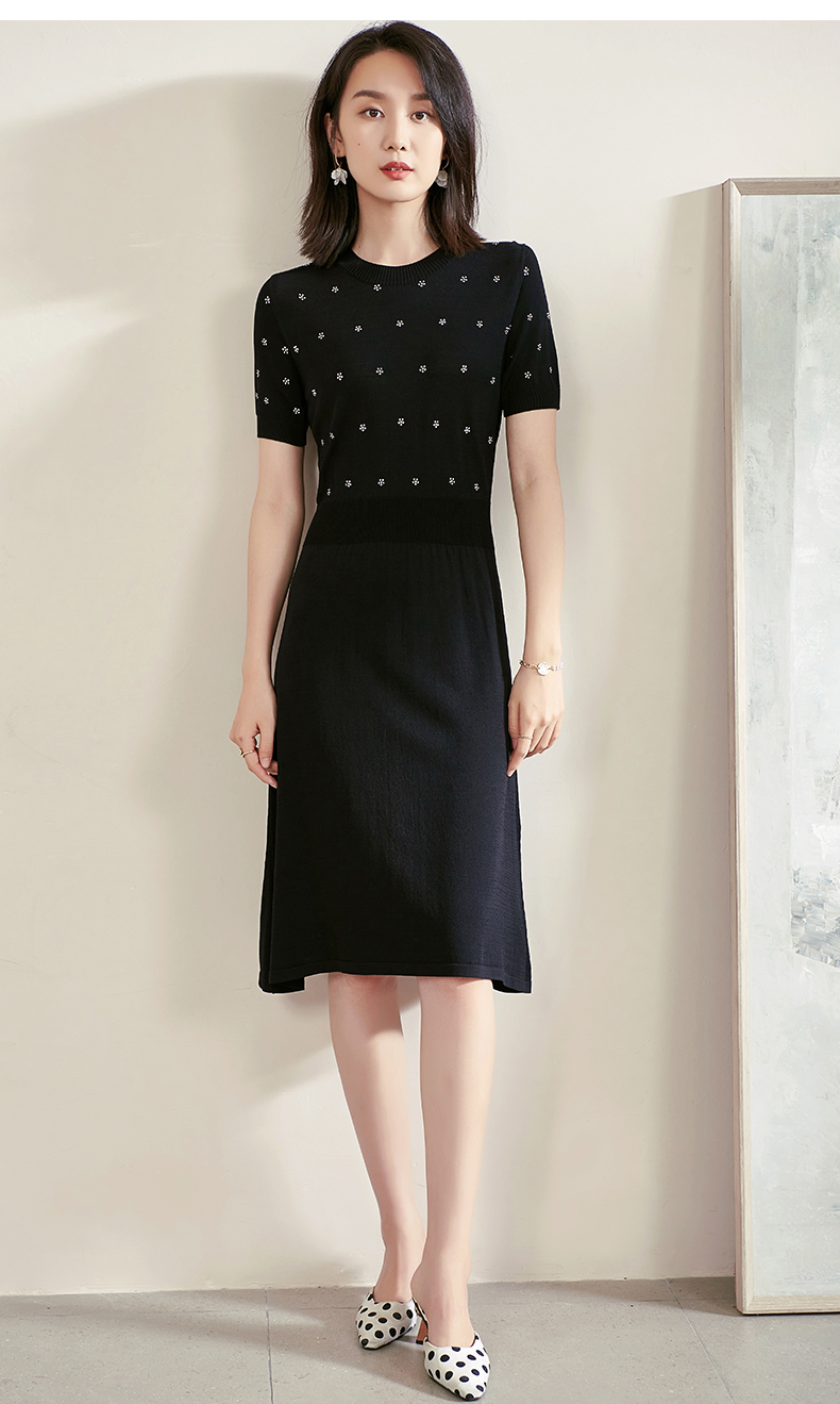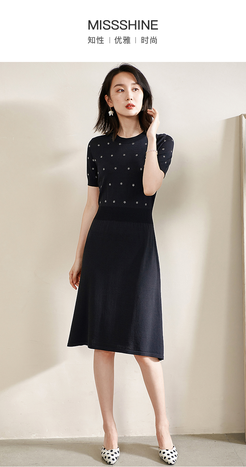 米思阳夏季新款气质碎花a字裙子修身显瘦针织中长连衣裙1561
