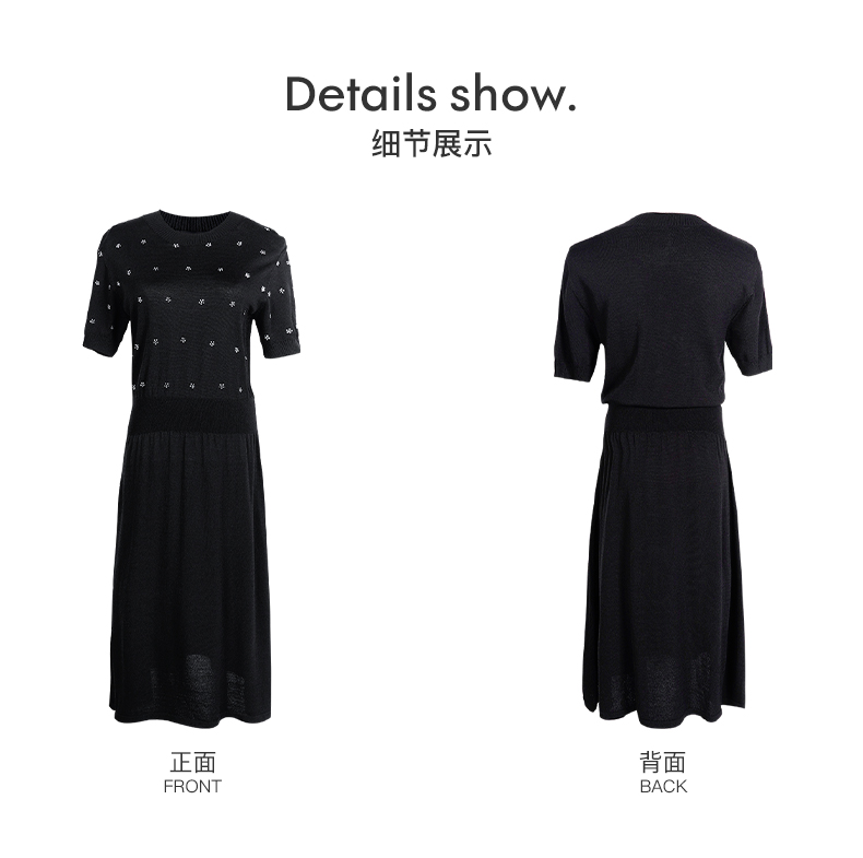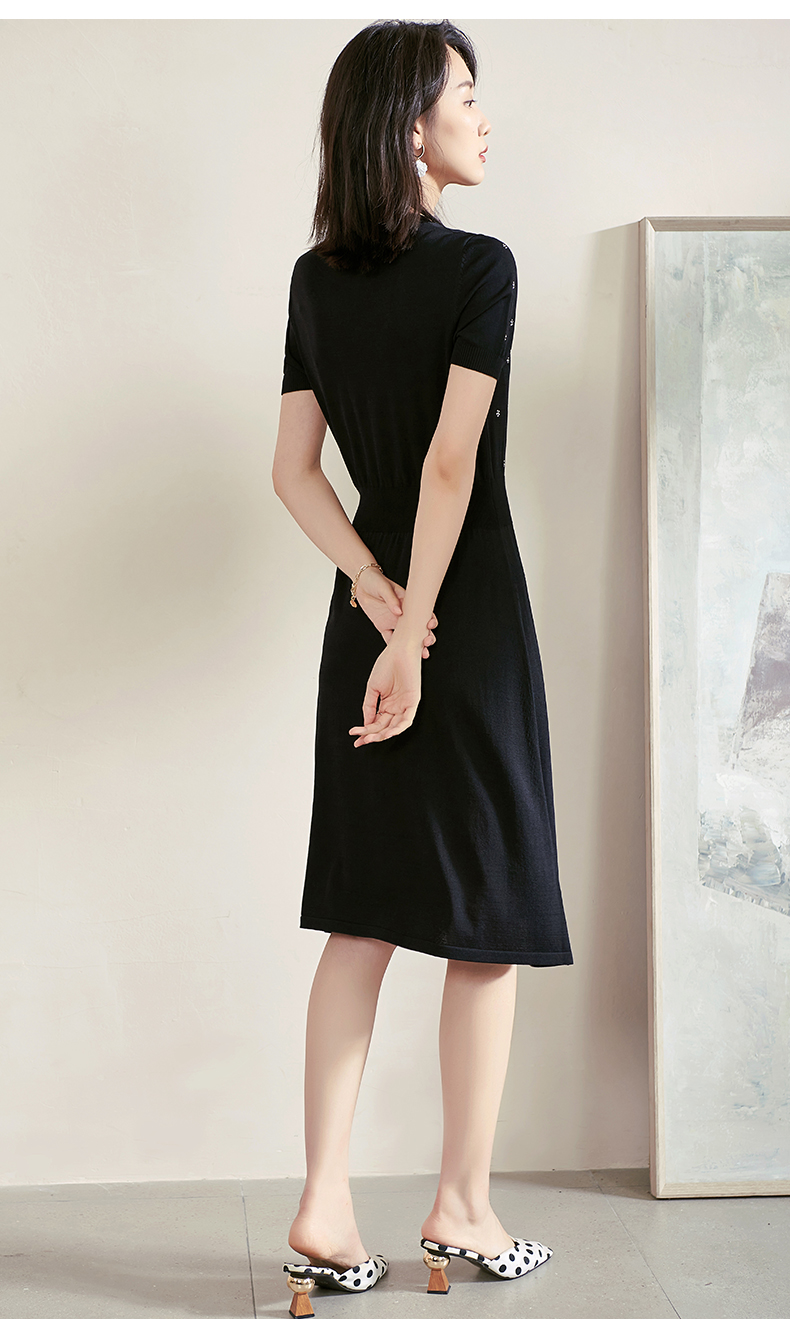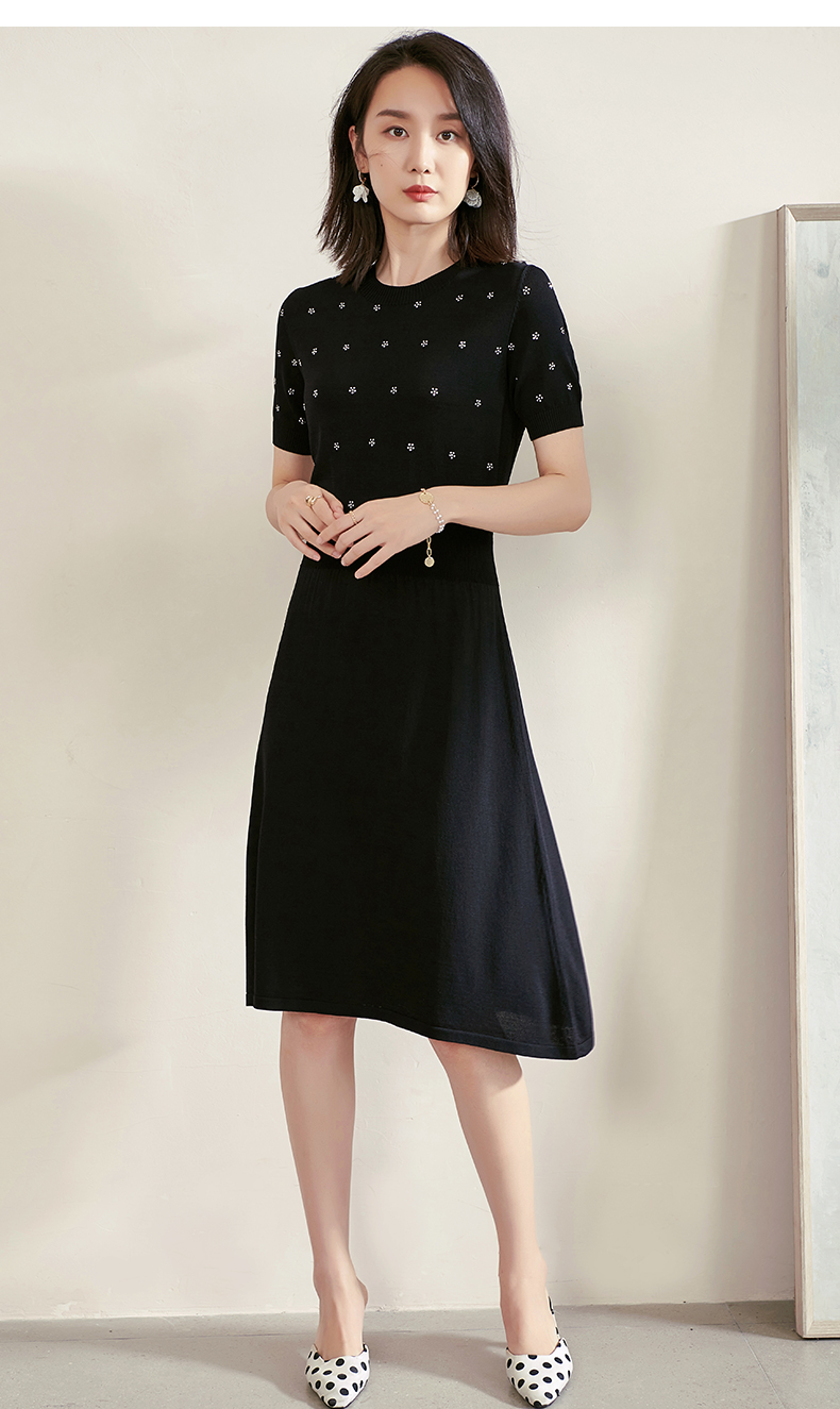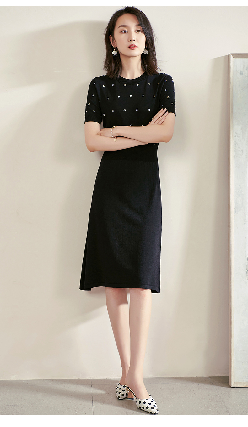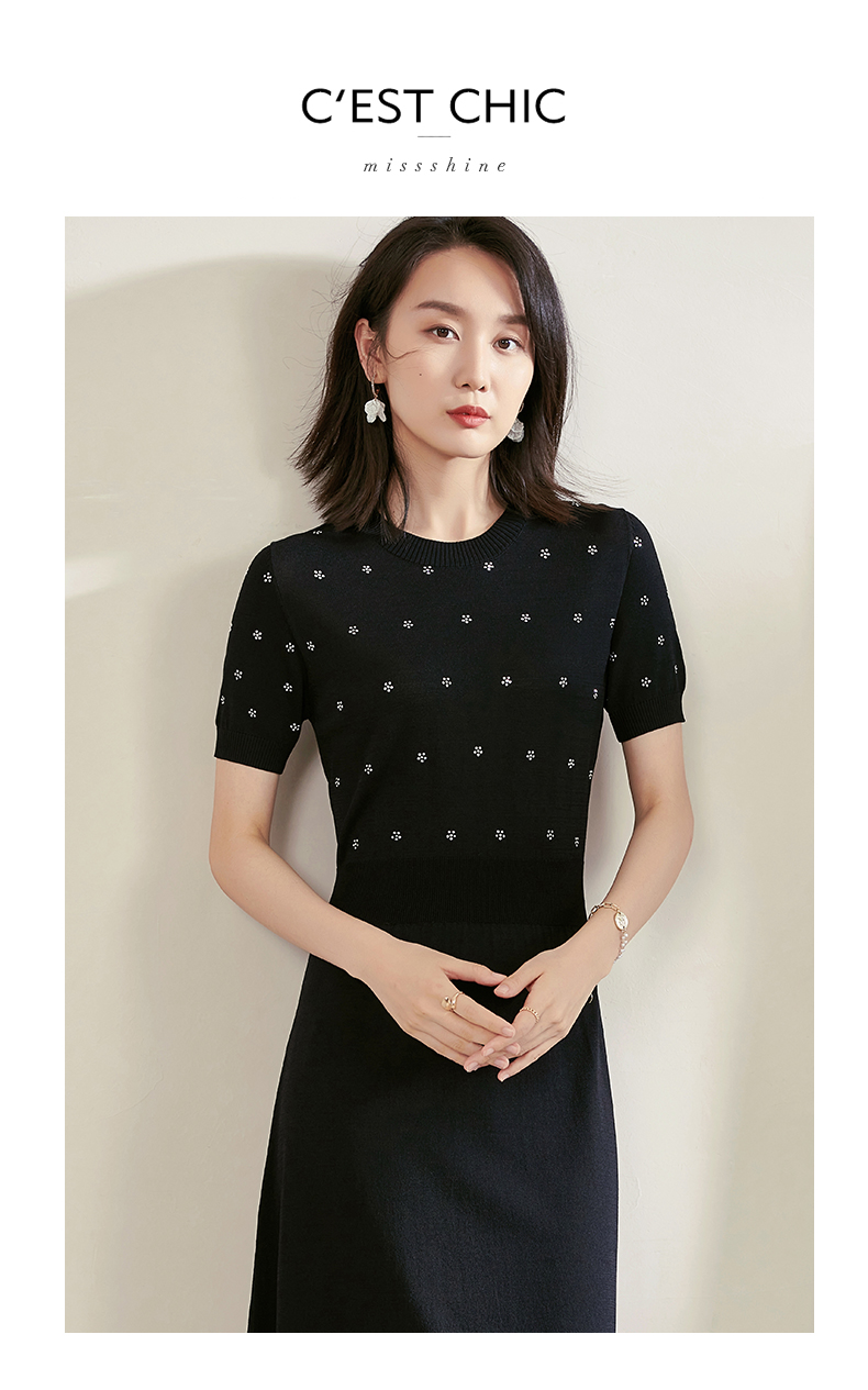 米思阳夏季新款气质碎花a字裙子修身显瘦针织中长连衣裙1561