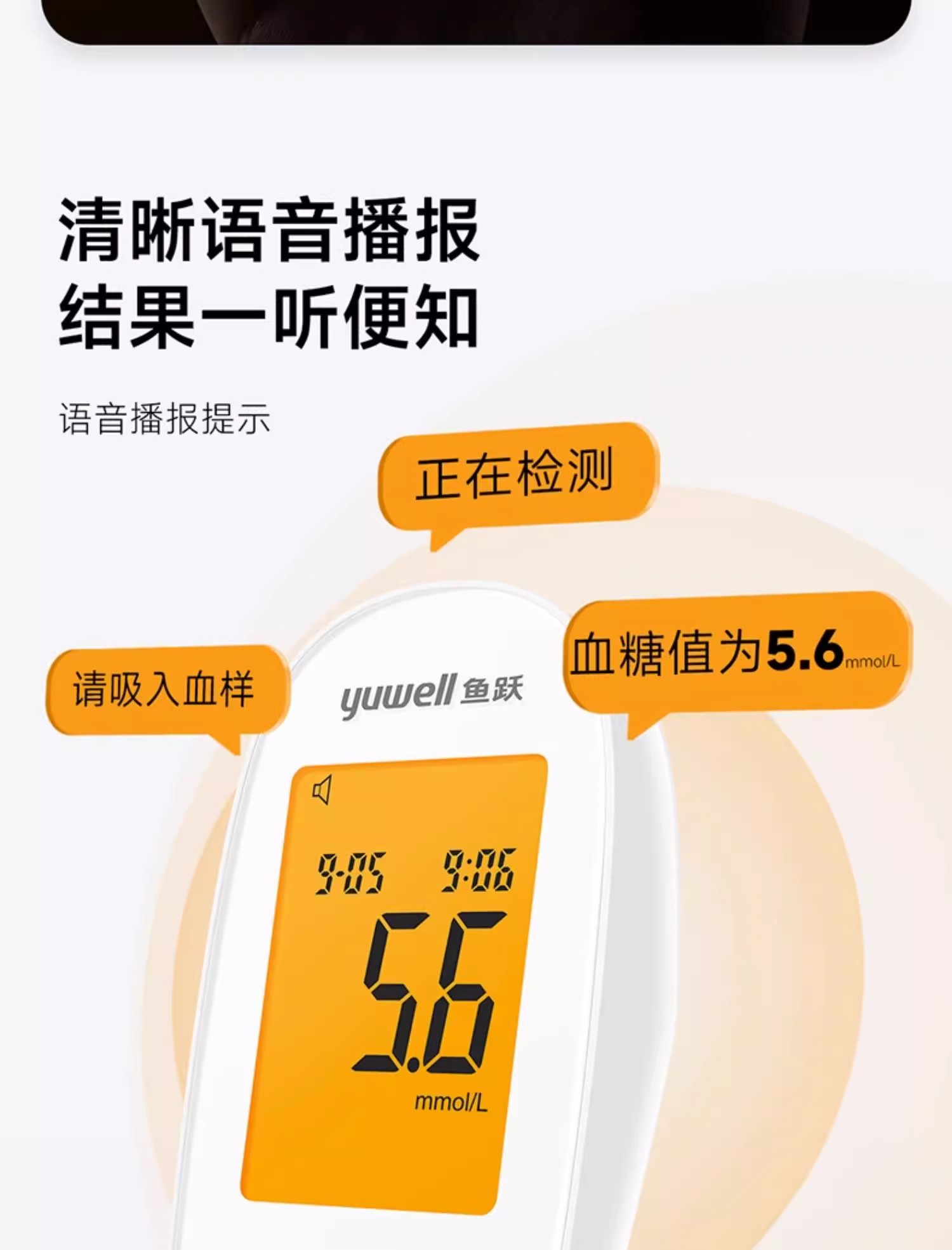 鱼跃血糖仪590套装 机器+多规格试纸 带语音