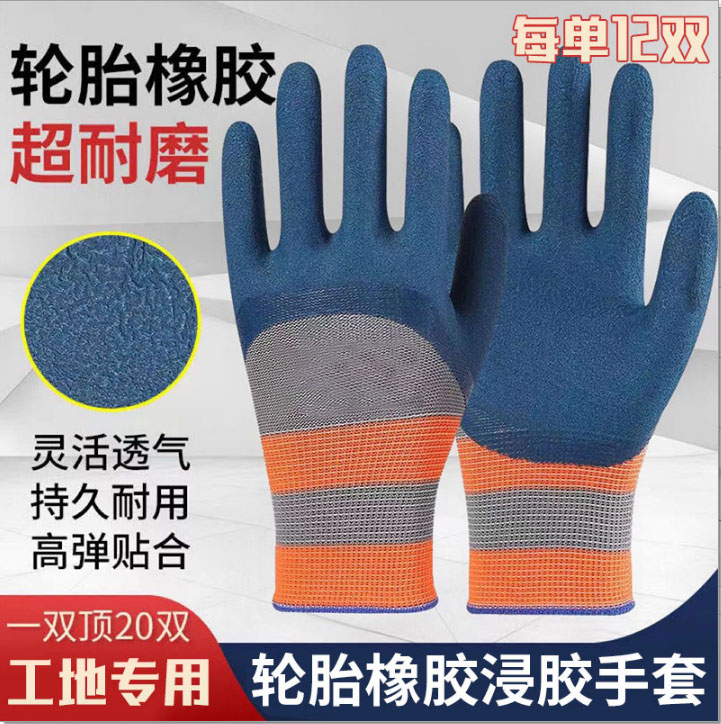 【12双】劳保发泡手套耐磨轮胎橡胶防滑防护干活建筑工地手套08171