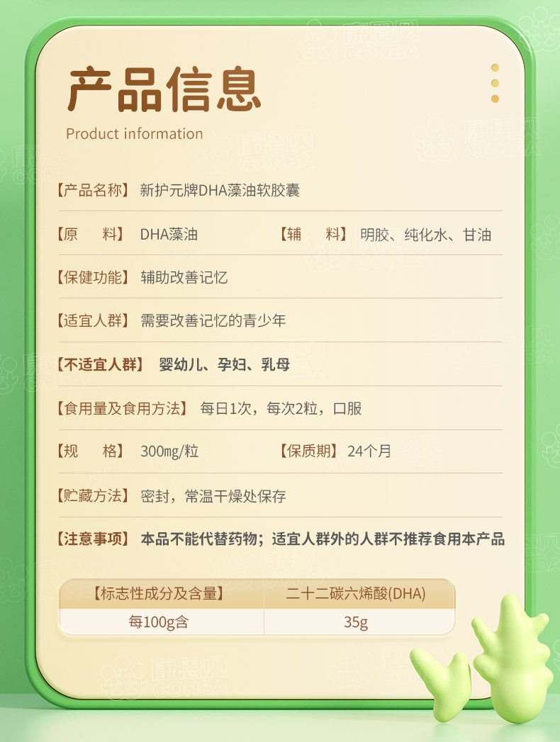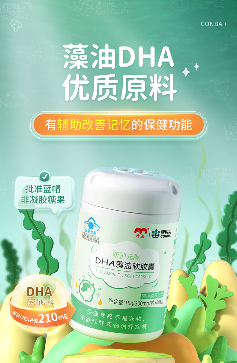 康恩贝新护元牌DHA藻油软胶囊(60粒)