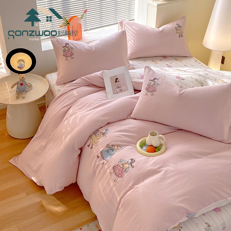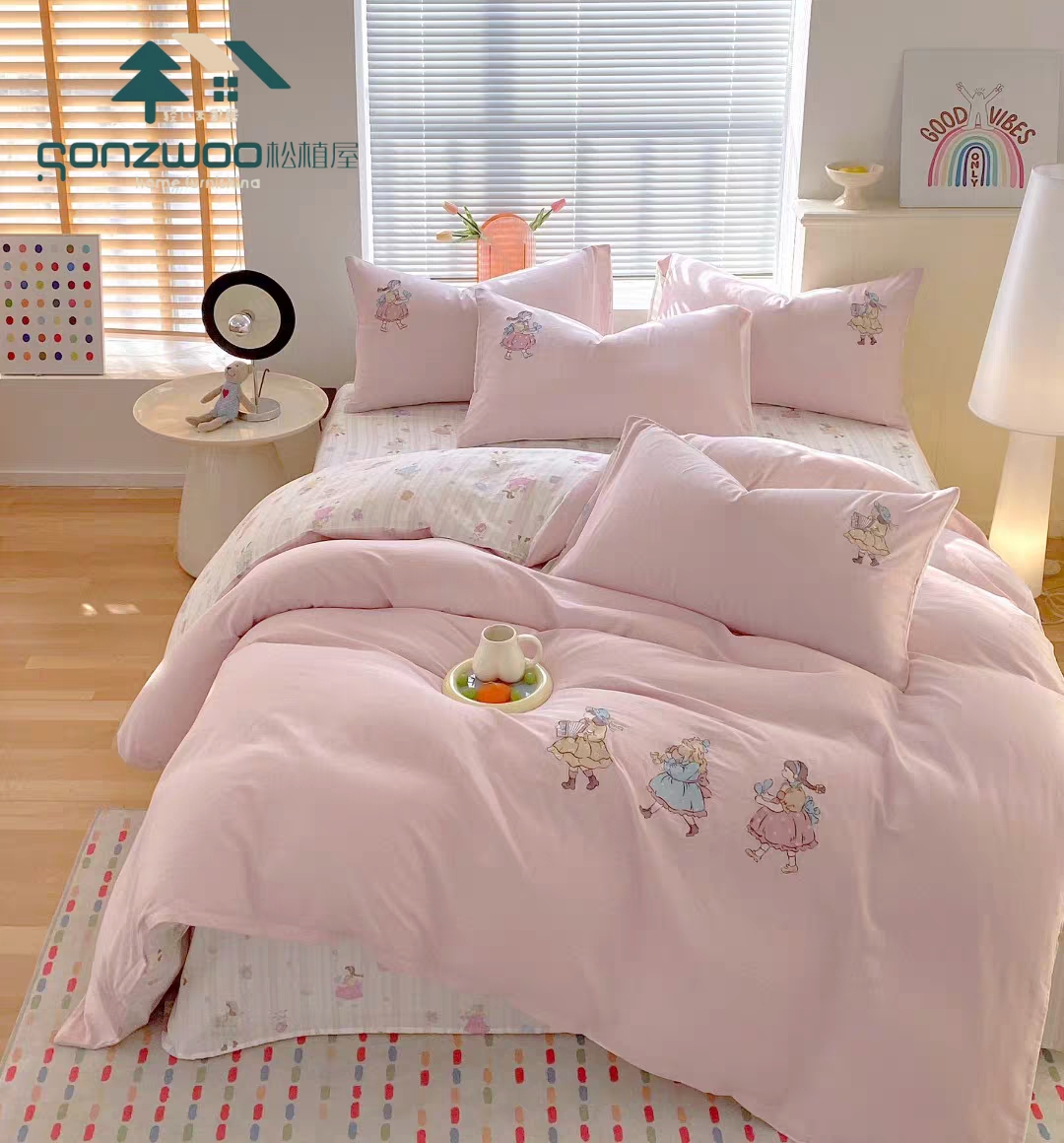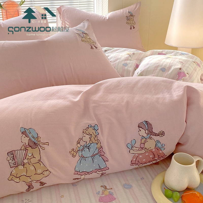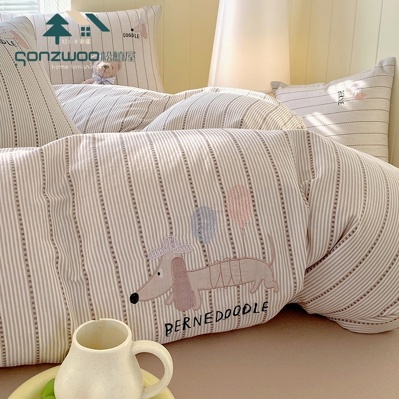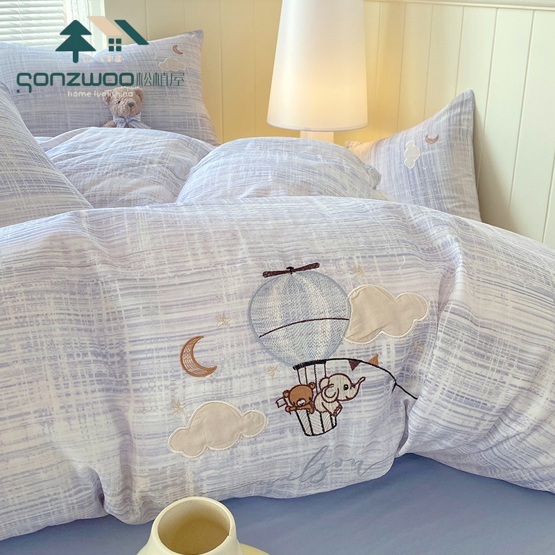 松植屋新品双层纱贴布刺绣四件套全棉有氧双层纱A类婴儿级裸睡标准,呵护你的每一寸肌肤