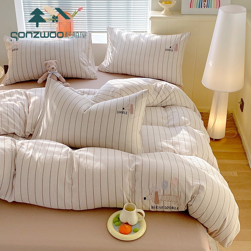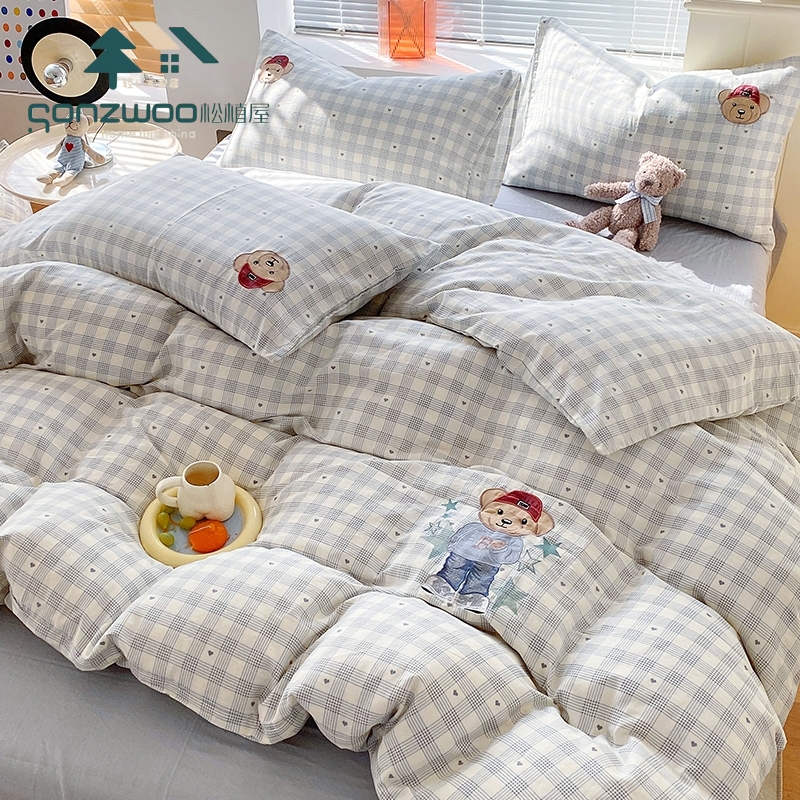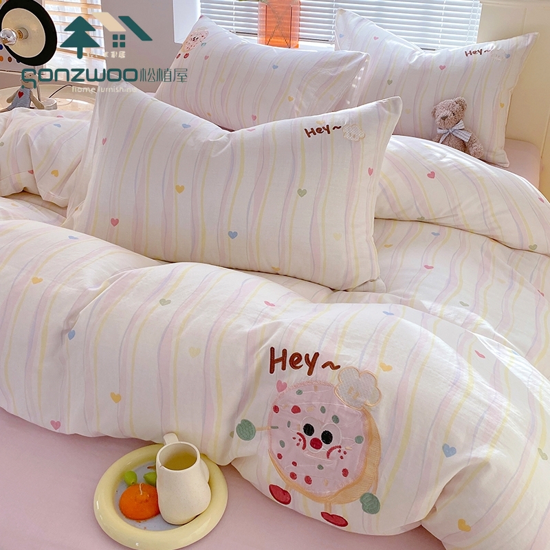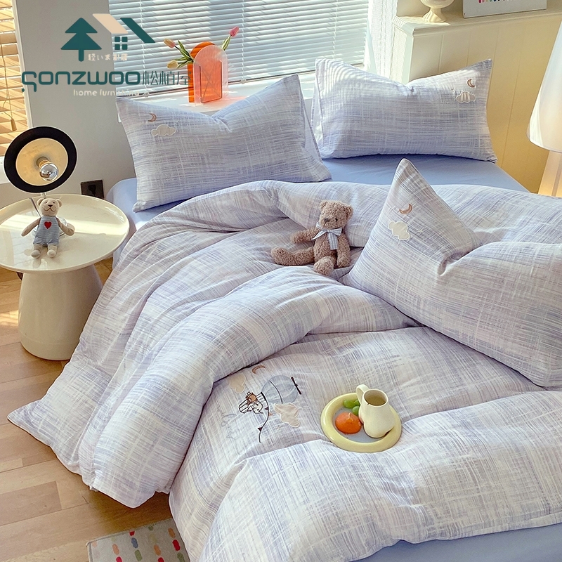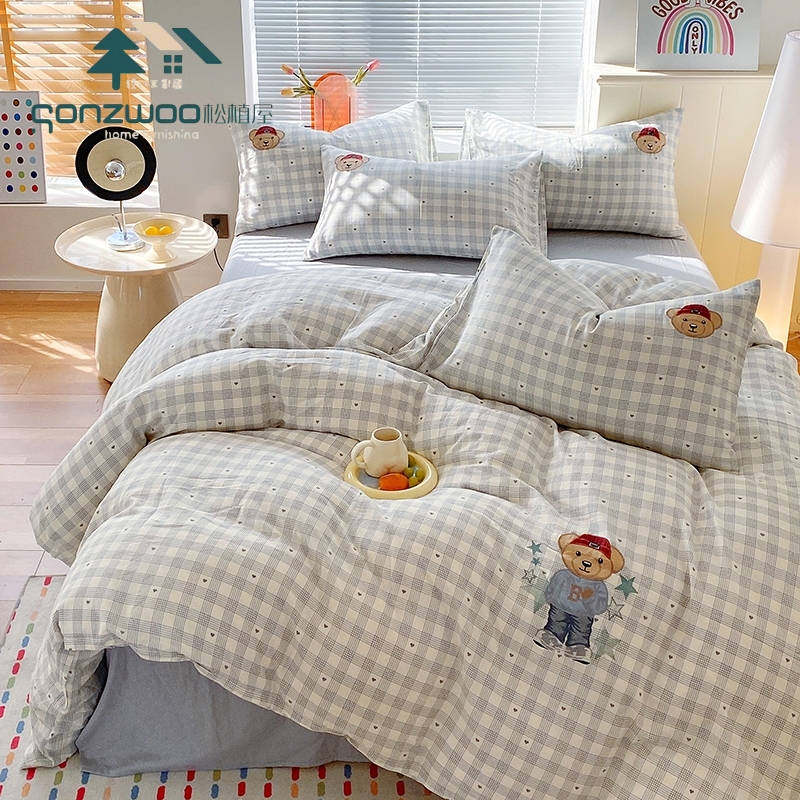 松植屋新品双层纱贴布刺绣四件套全棉有氧双层纱A类婴儿级裸睡标准,呵护你的每一寸肌肤