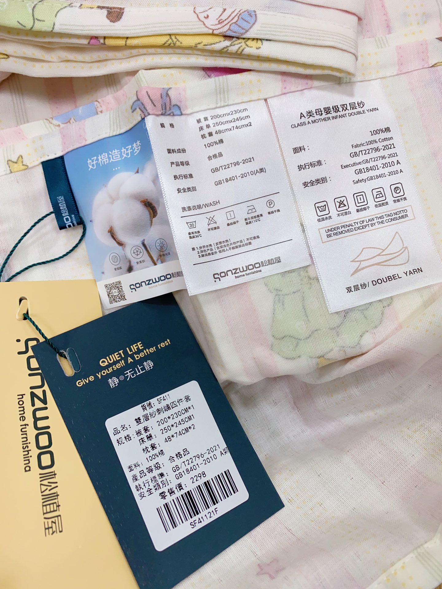 面料:100%全棉双层纱,采用精梳纱线紧密交织而成。活性印染,色泽柔和,不易褪色,环保健康,A类母婴级别♥