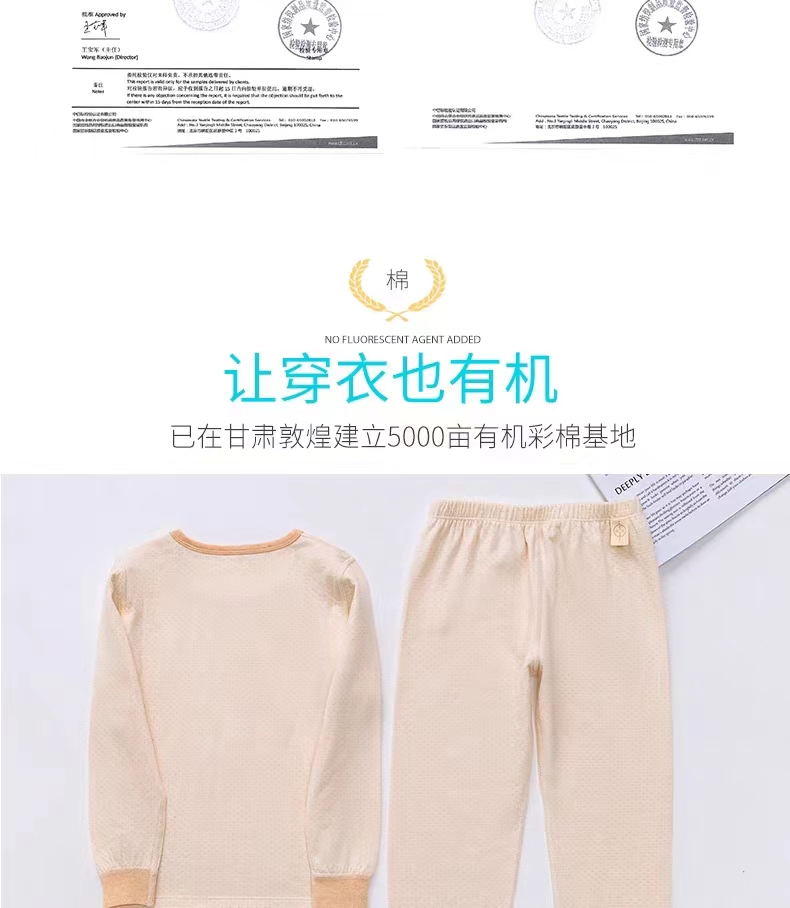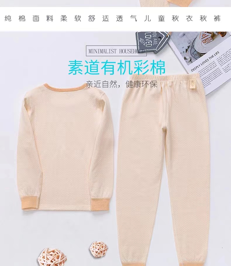 素道有机彩棉儿童内衣套装 秋衣裤 中童 大童 冬季贴身 纯棉保暖亲肤