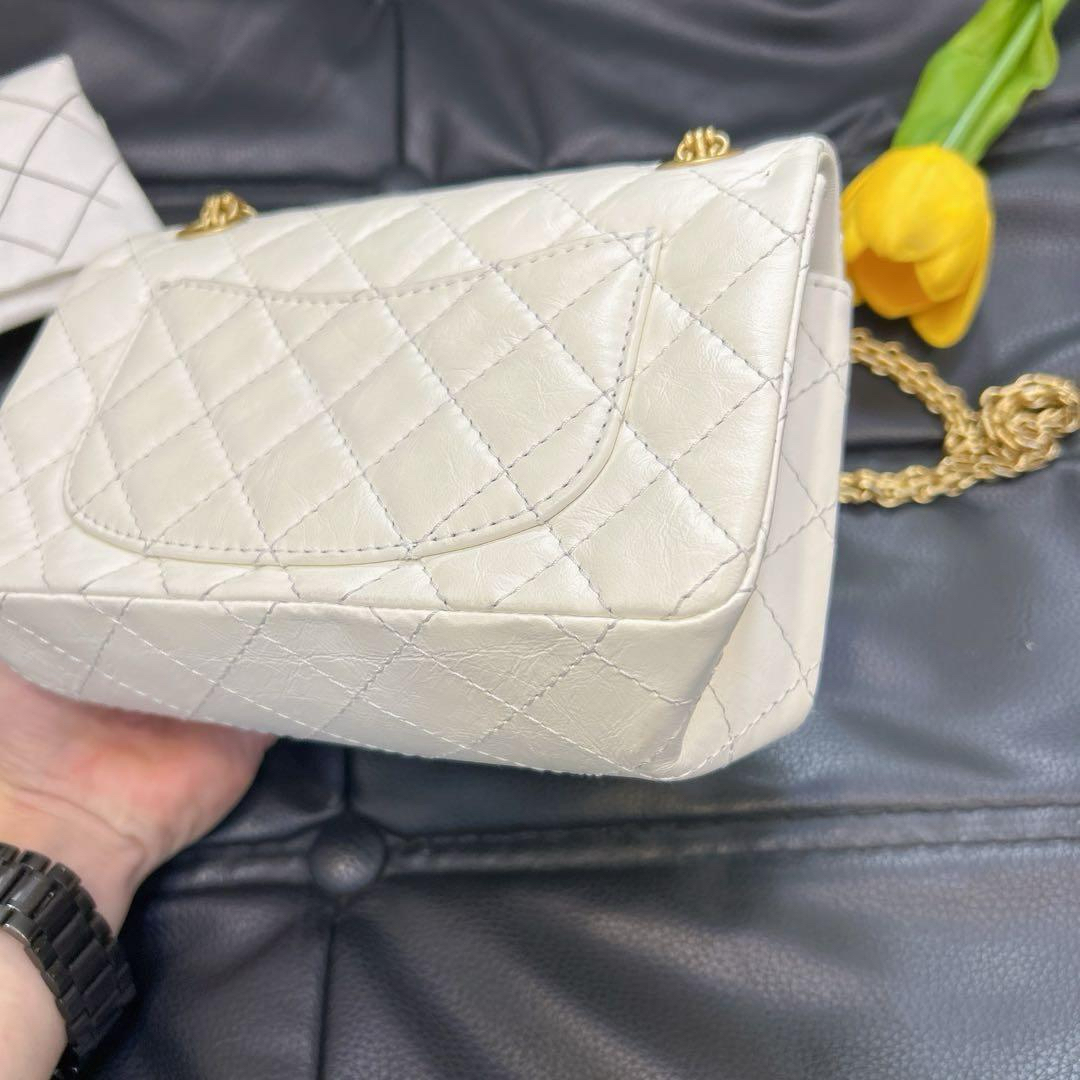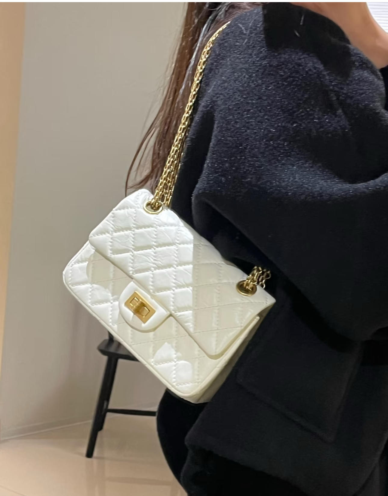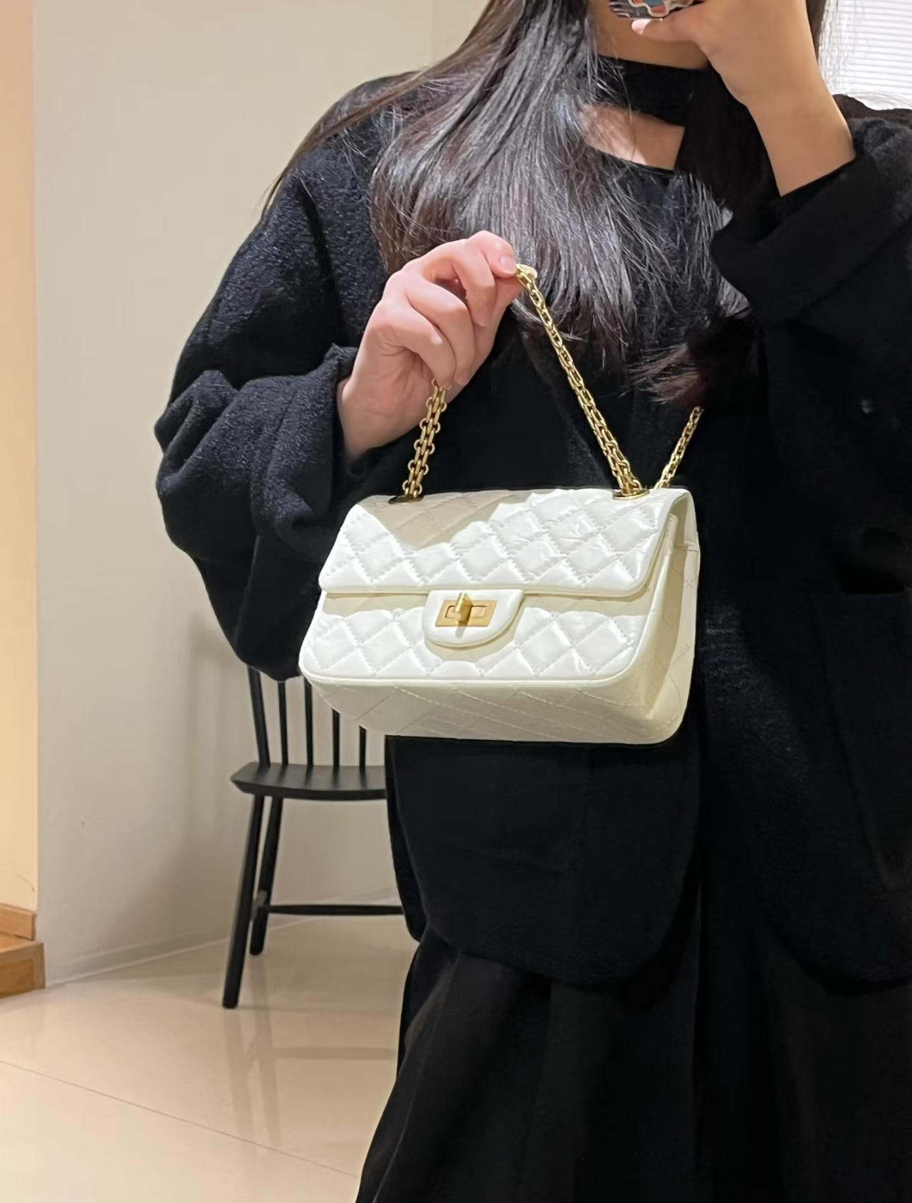 CHANEL 大mini 白色 油蜡牛皮 2.55 链条包