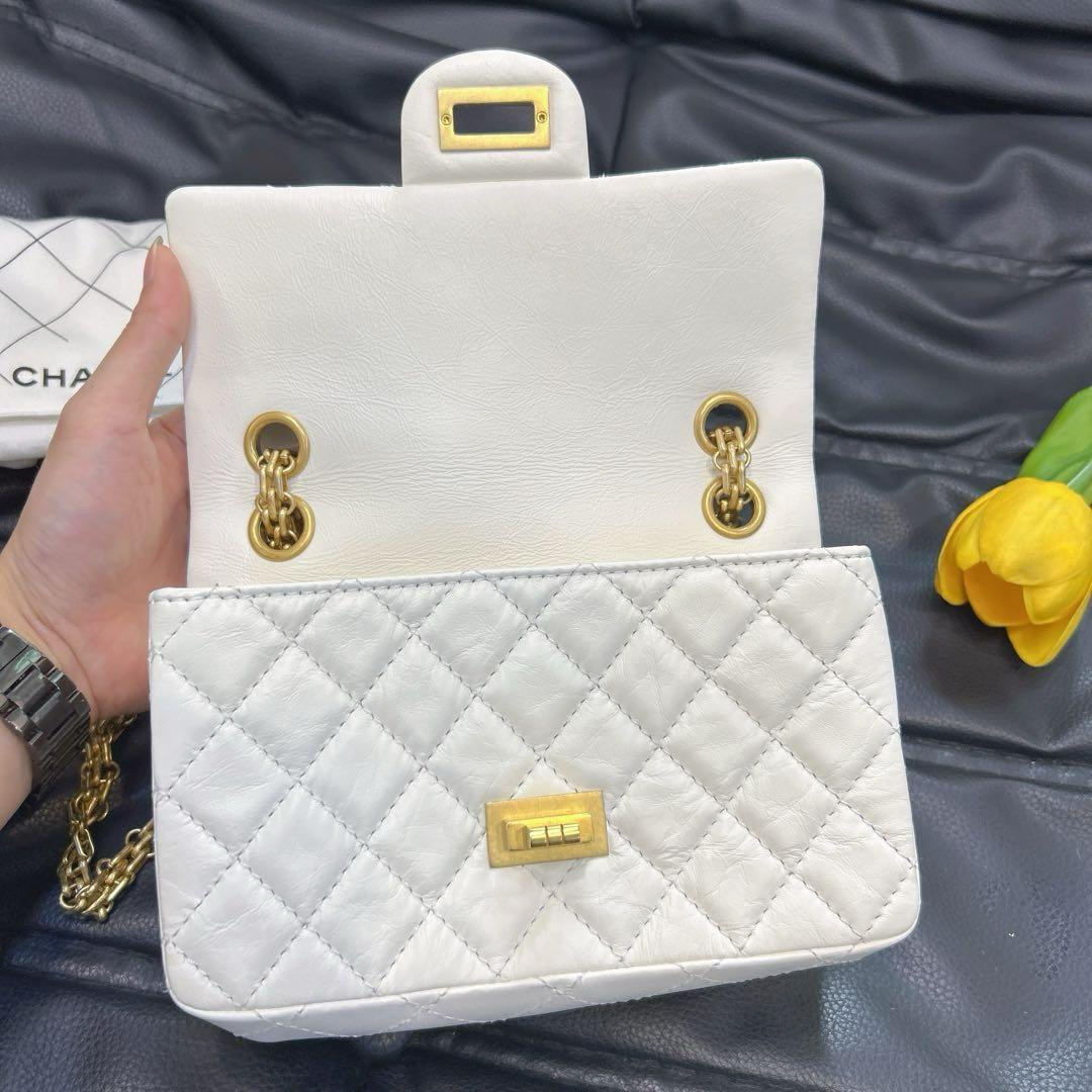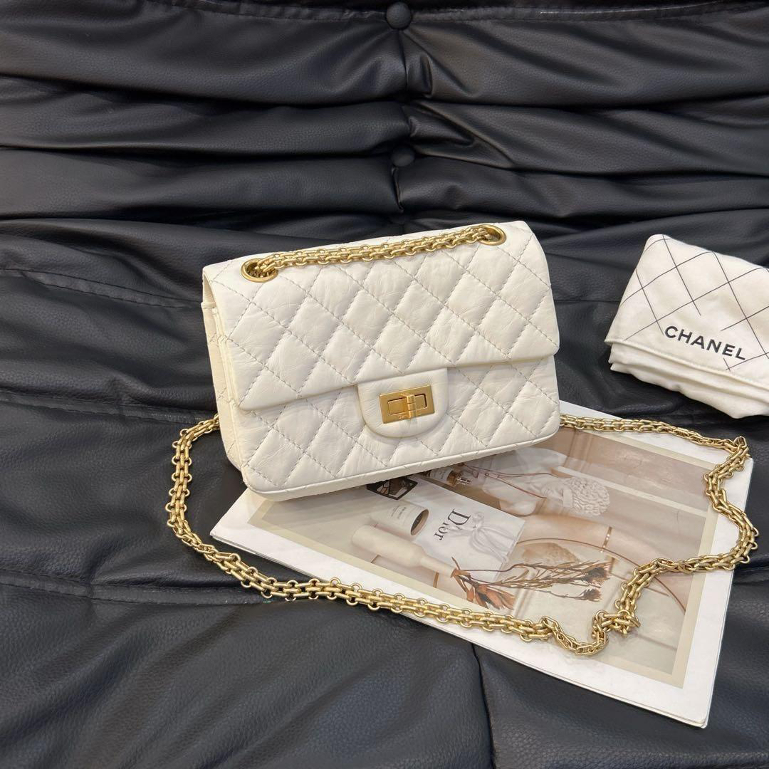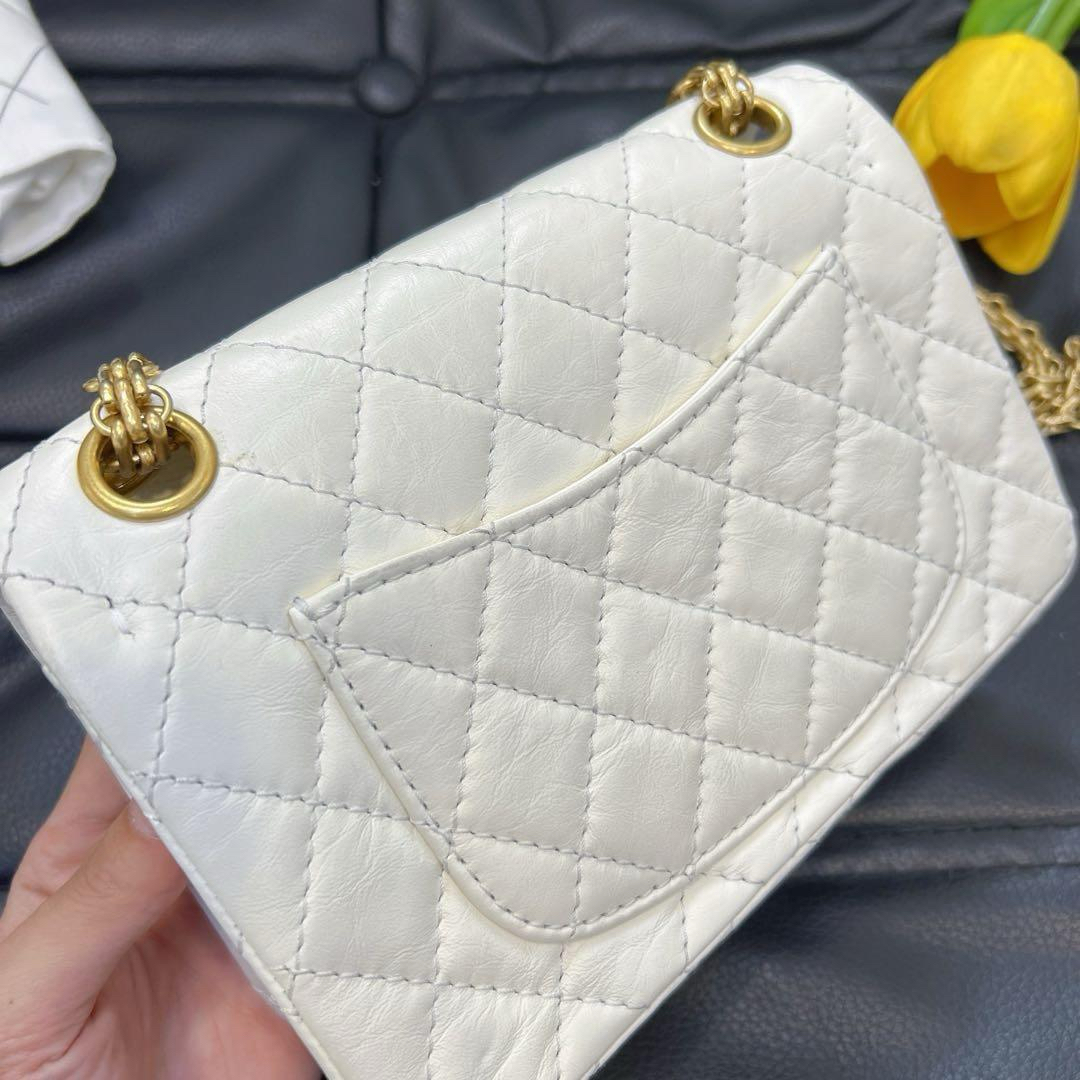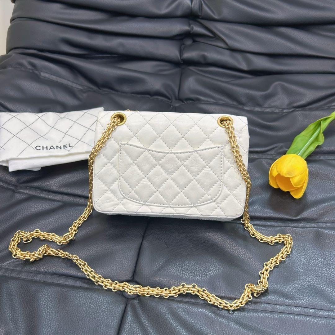 【商品详情】正品二手 CHANEL 大mini 白色 油蜡牛皮 2.55 链条包👑 98新 20×12 镭射刚标 配件:防尘袋。美爆的白色上身绝绝子