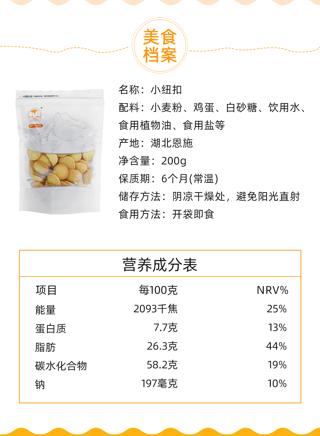 巴东鄂有好货天子岩土家小零食小纽扣饼干200g