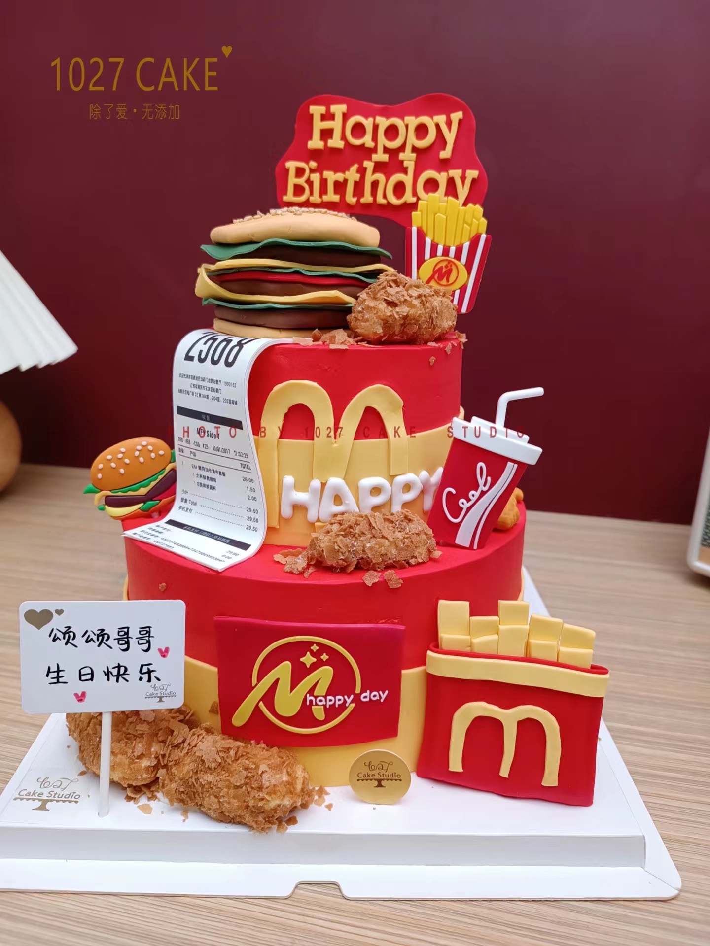1027CAKE | 一起吃麦当劳吧 有鸡腿哒 趣味蛋糕 翻糖装饰 双层