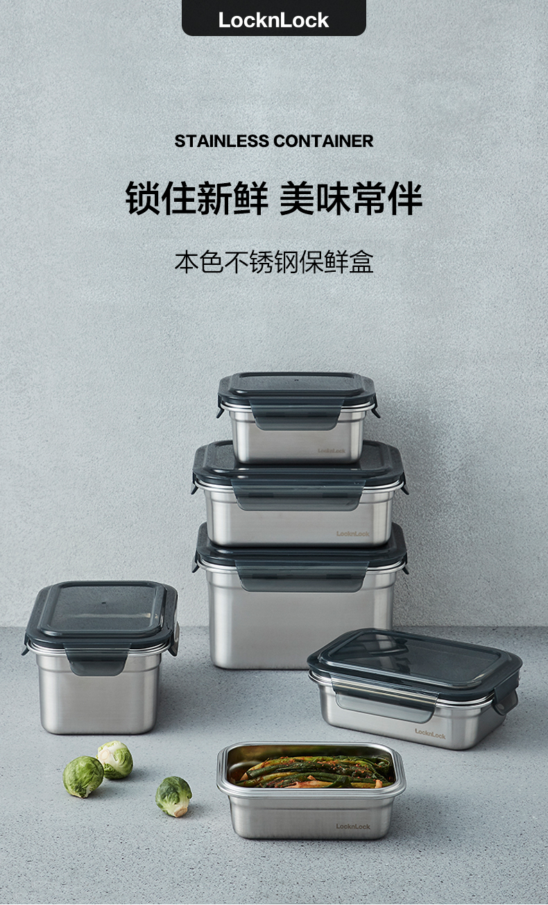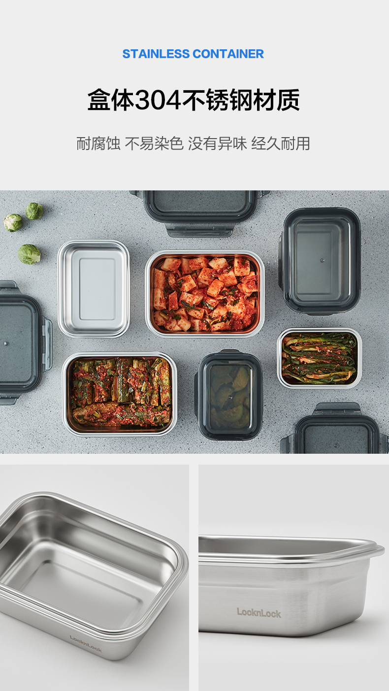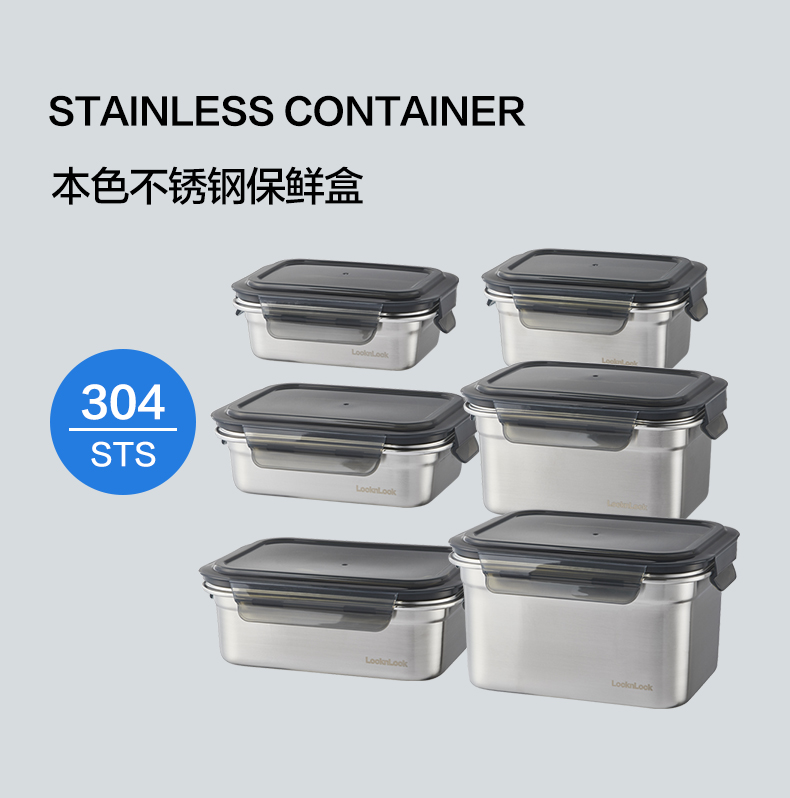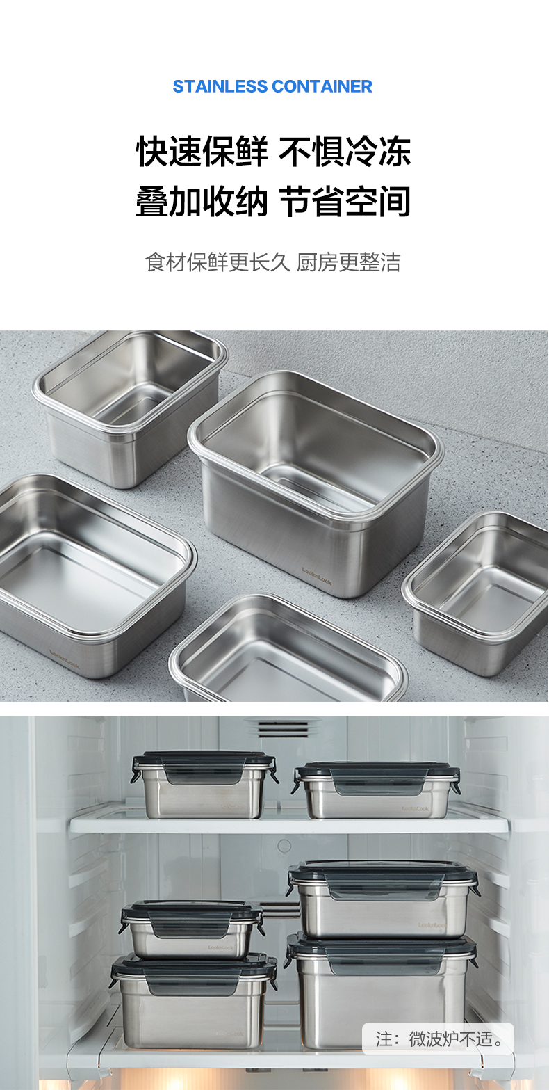 乐扣乐扣保鲜盒304不锈钢食品收纳密封水果便当盒便携冰箱专用