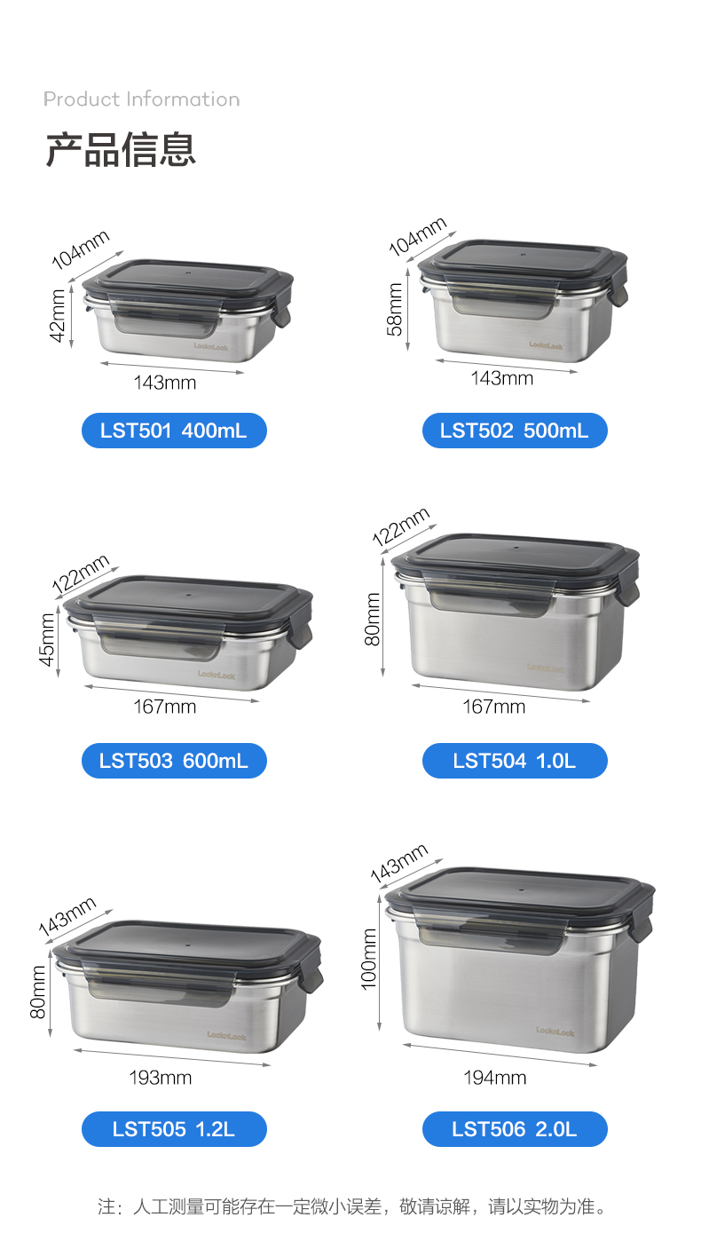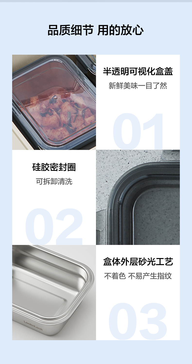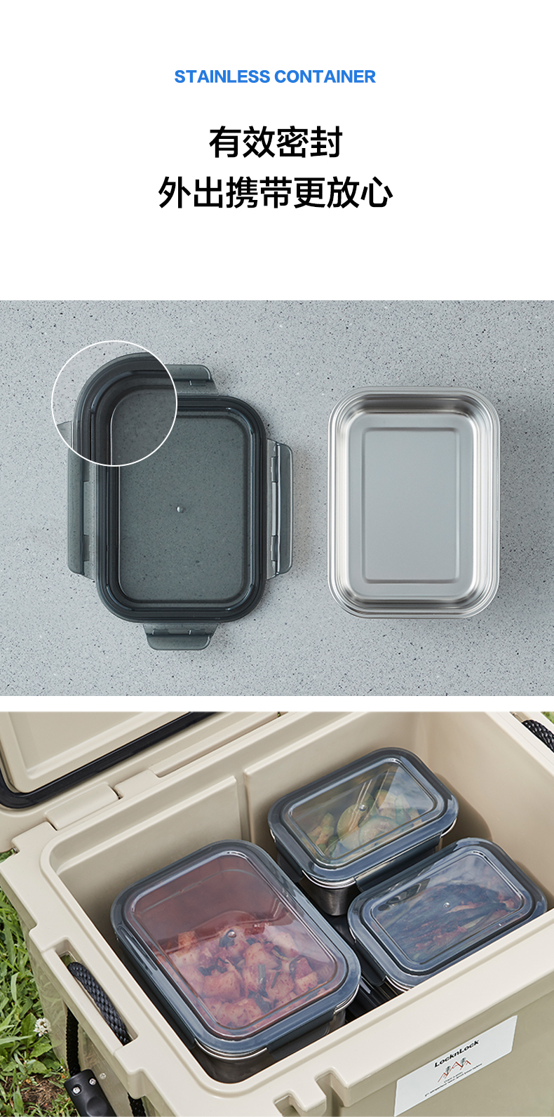 乐扣乐扣保鲜盒304不锈钢食品收纳密封水果便当盒便携冰箱专用