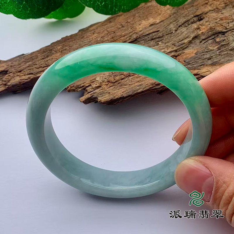 派瑞翡翠 翡翠手镯 糯种 绿色 飘花