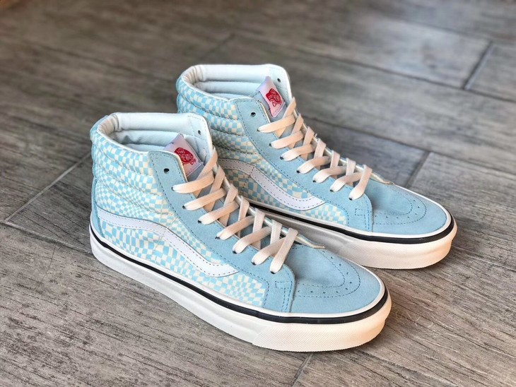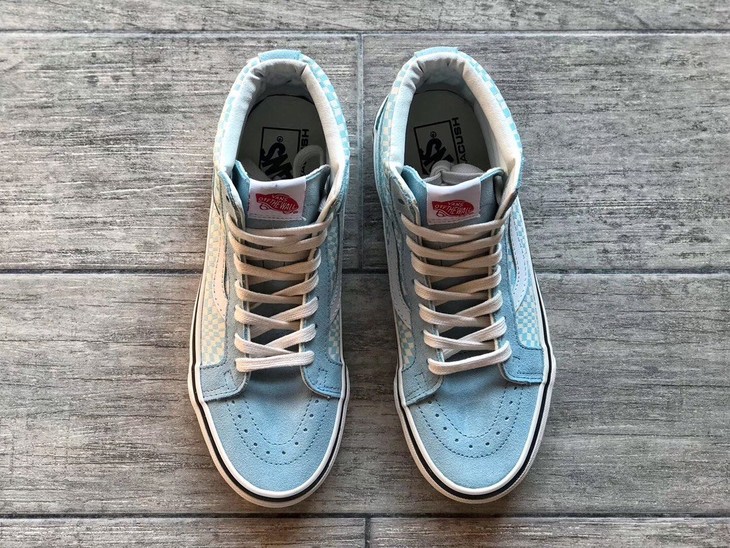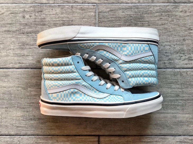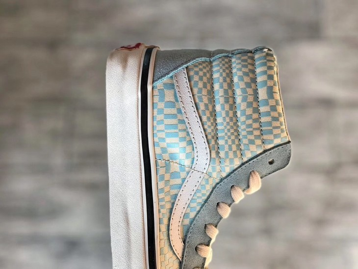 Vans Sk8-Hi 38DX 安纳海姆天蓝马赛克高帮硫化板鞋 整鞋大面积使用天蓝色作为主色调,与这个季节的气息相映相融,马赛克万花筒格子设计,极具设计感,上脚颜值也极高 硫化版本