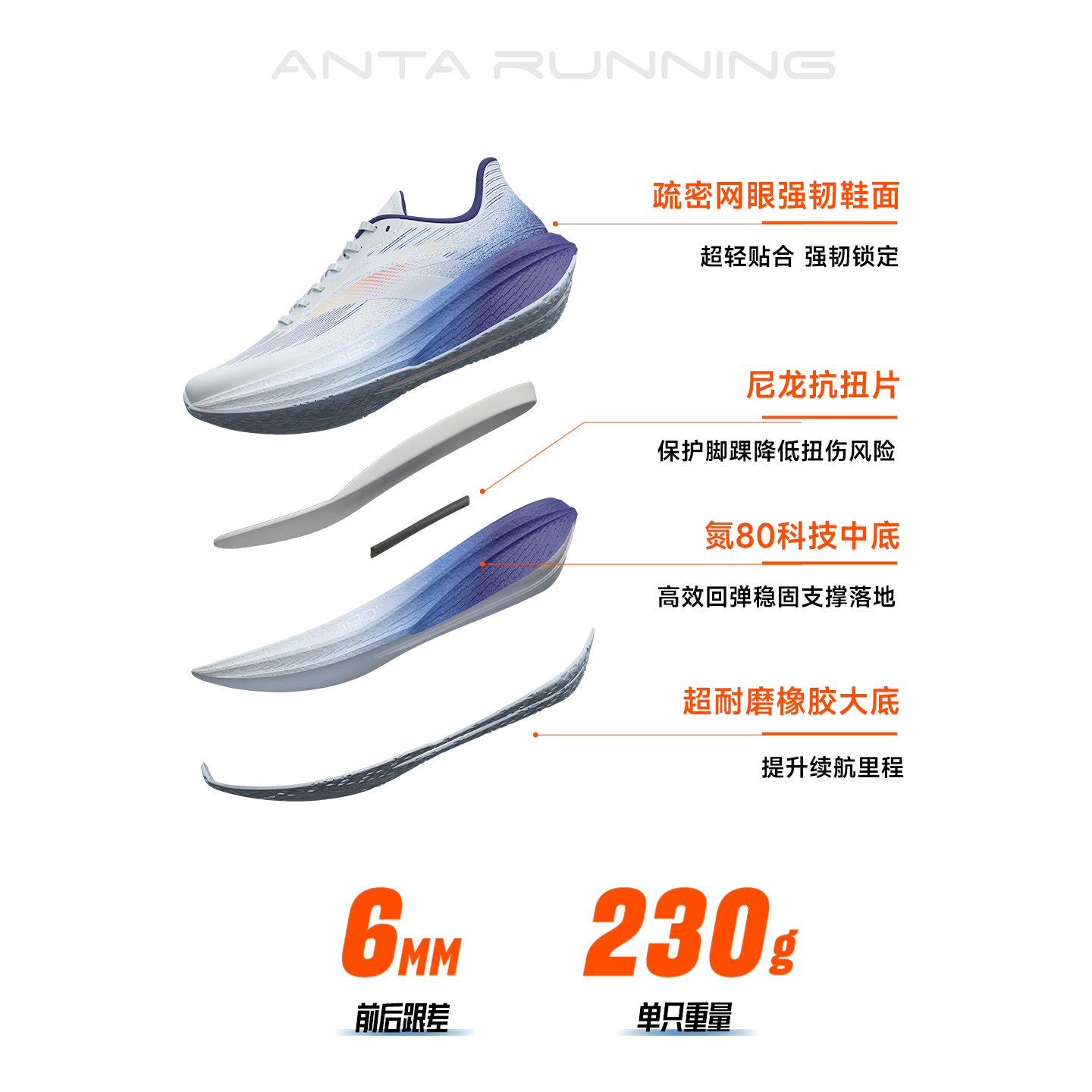 安踏二区心率80舒适缓震男子长距离轻量化训练跑鞋112615555-4