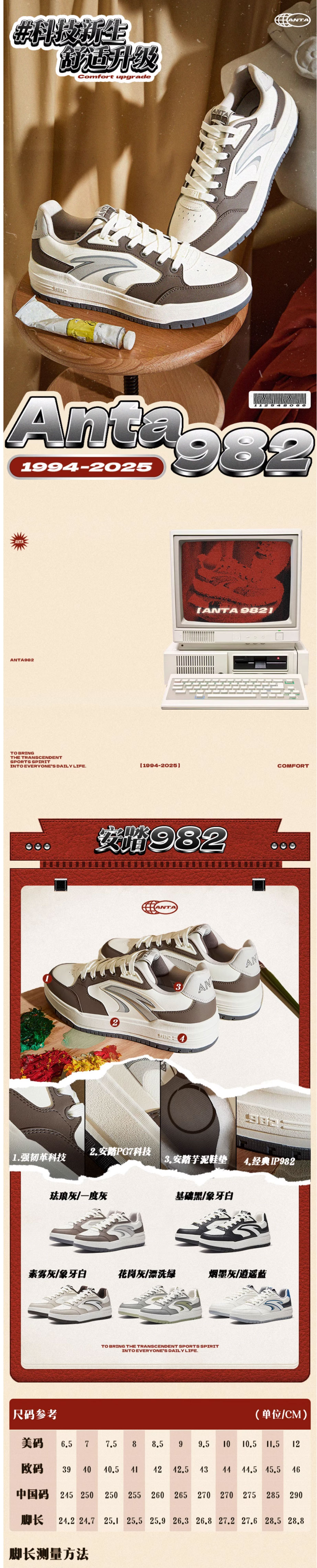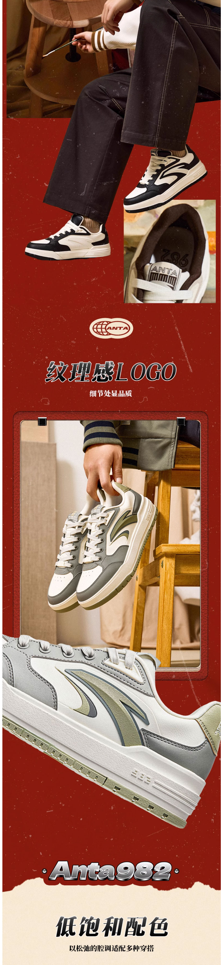 安踏982丨经典黑白低帮板鞋男鞋2025秋季新款滑板运动鞋112548066-4