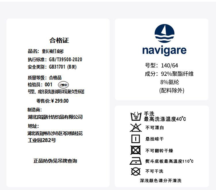 【纳维凯尔】【120-165】Navigare意大利小帆船男童长袖打底衫T恤