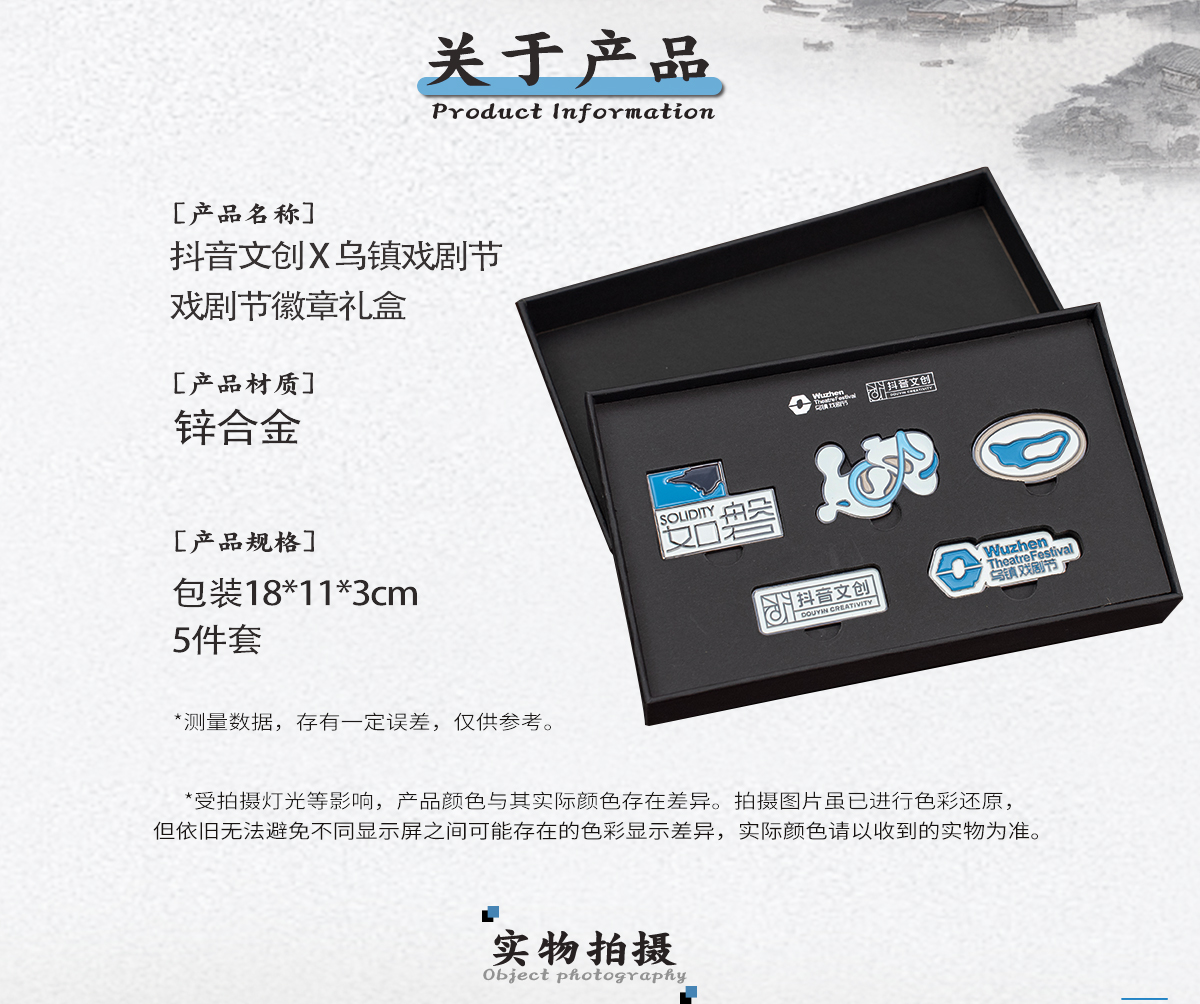 乌镇戏剧节mini徽章 第十一届戏剧节迷你胸针 徽章礼盒5件套
