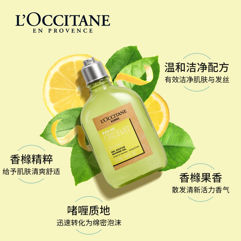 L'occitane欧舒丹男士活力洗发沐浴露250ml