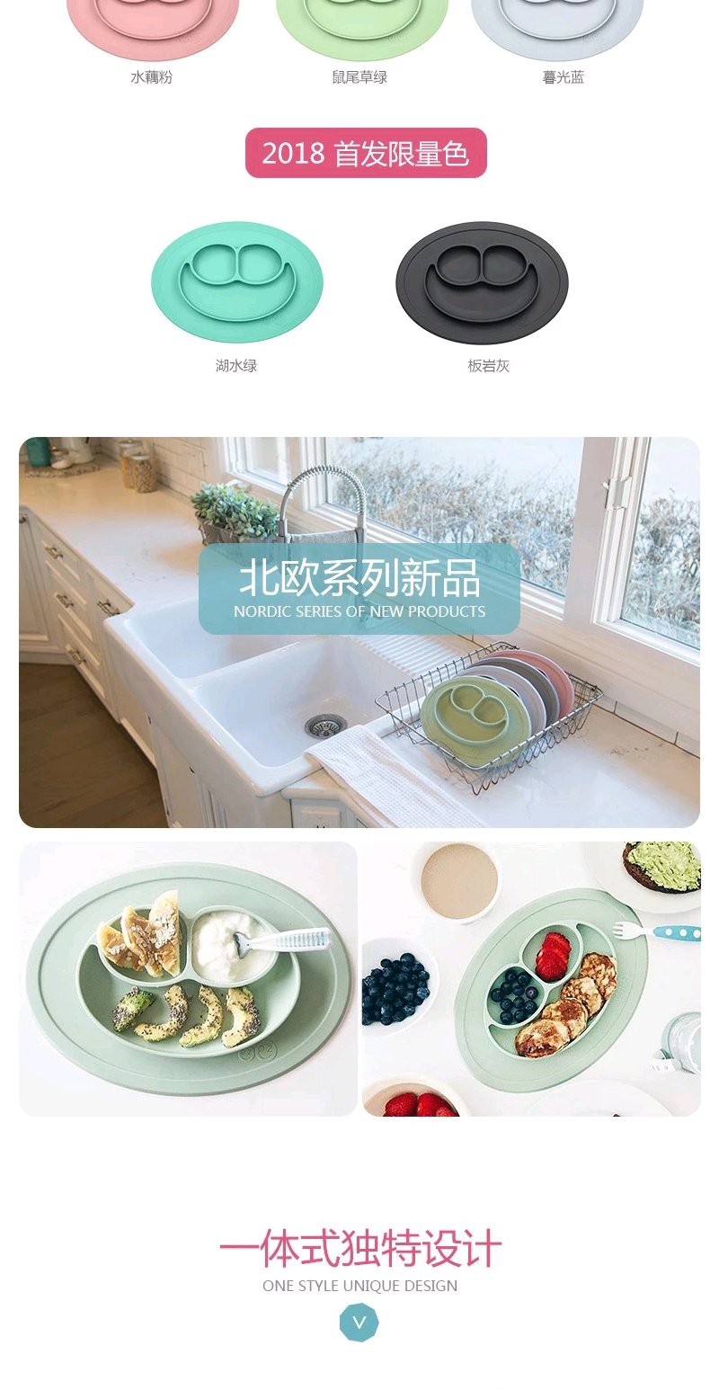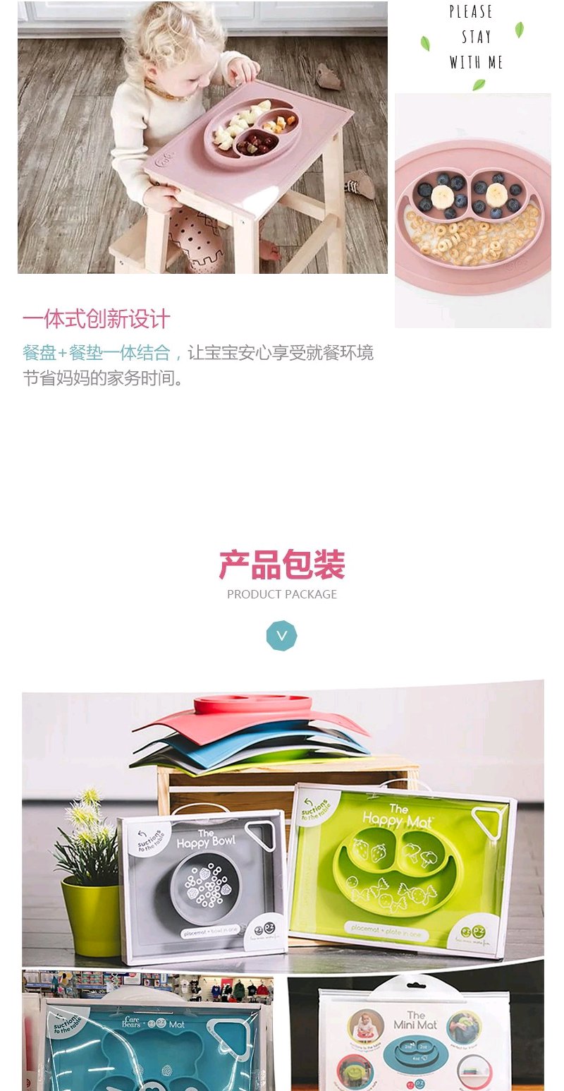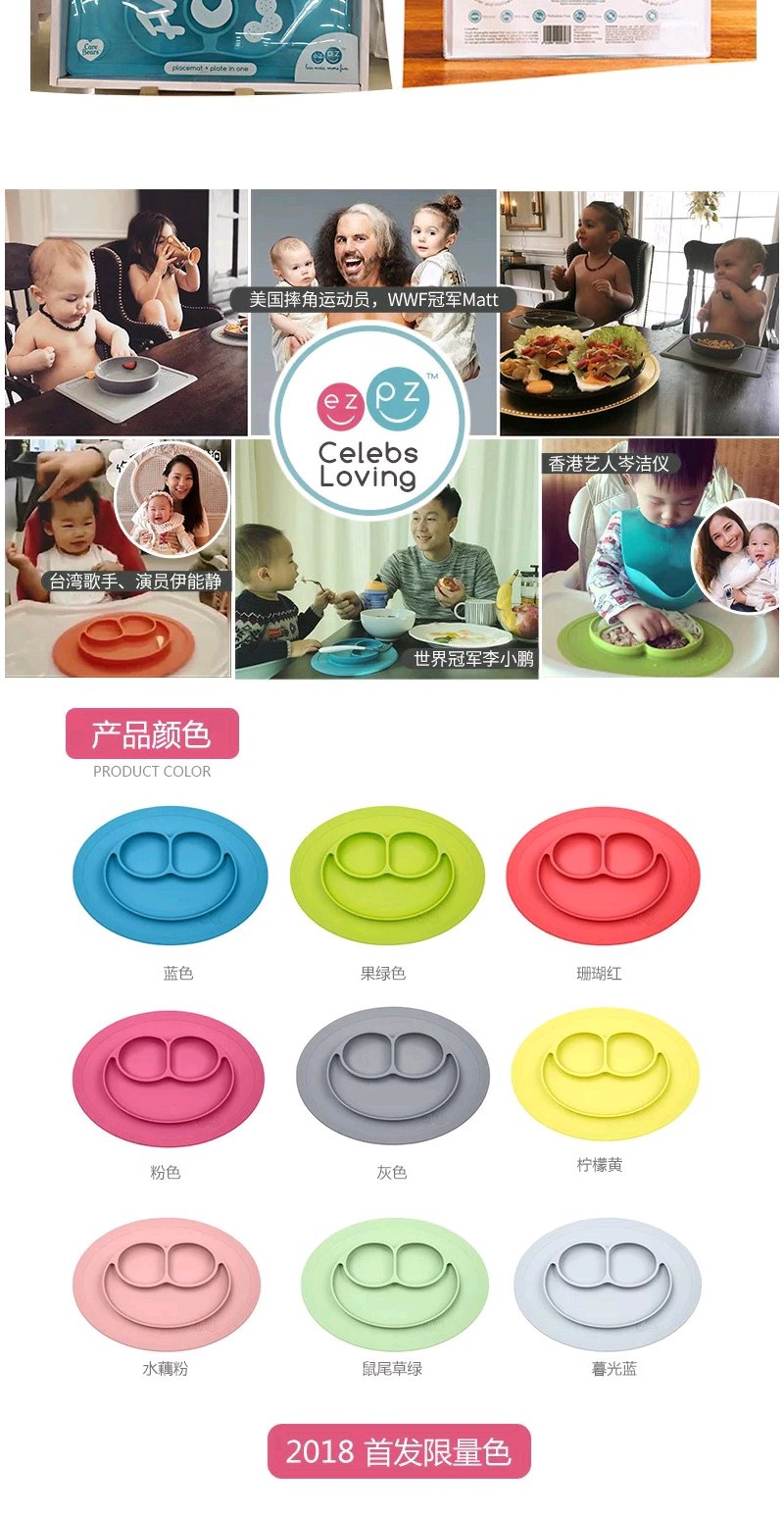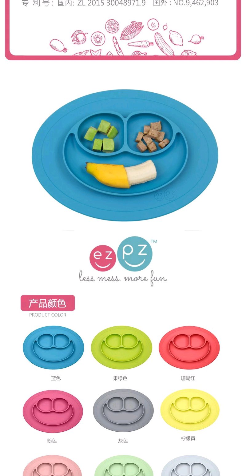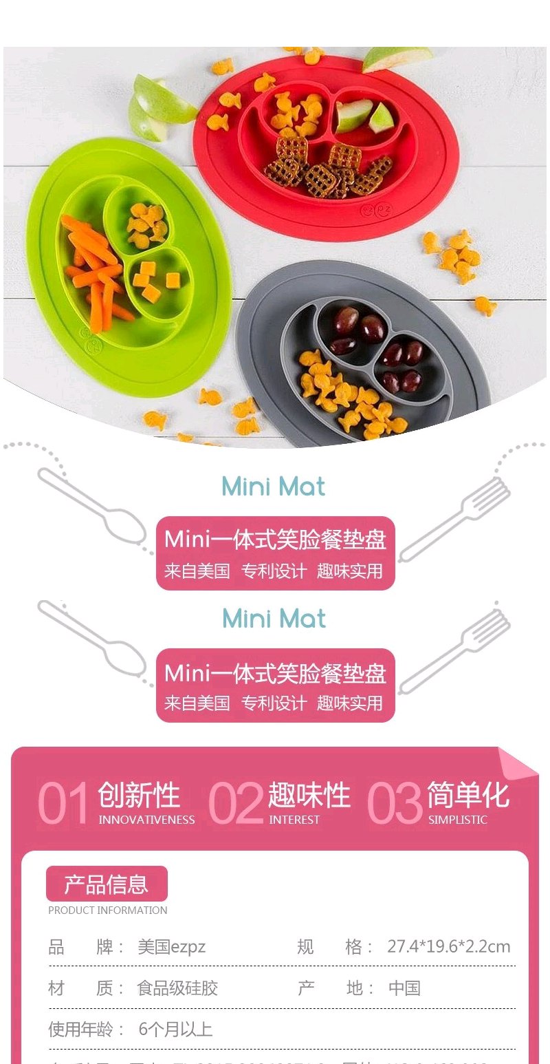 现货)美国ezpz儿童硅胶餐盘mini一体式笑脸餐垫盘宝宝分格餐具