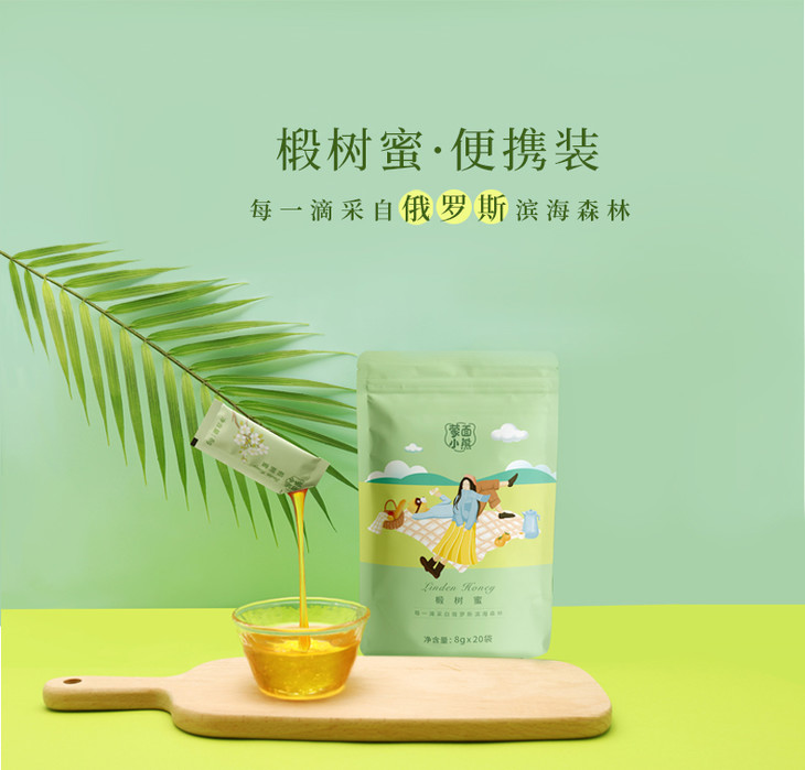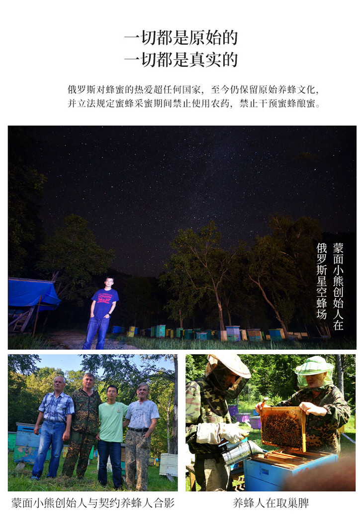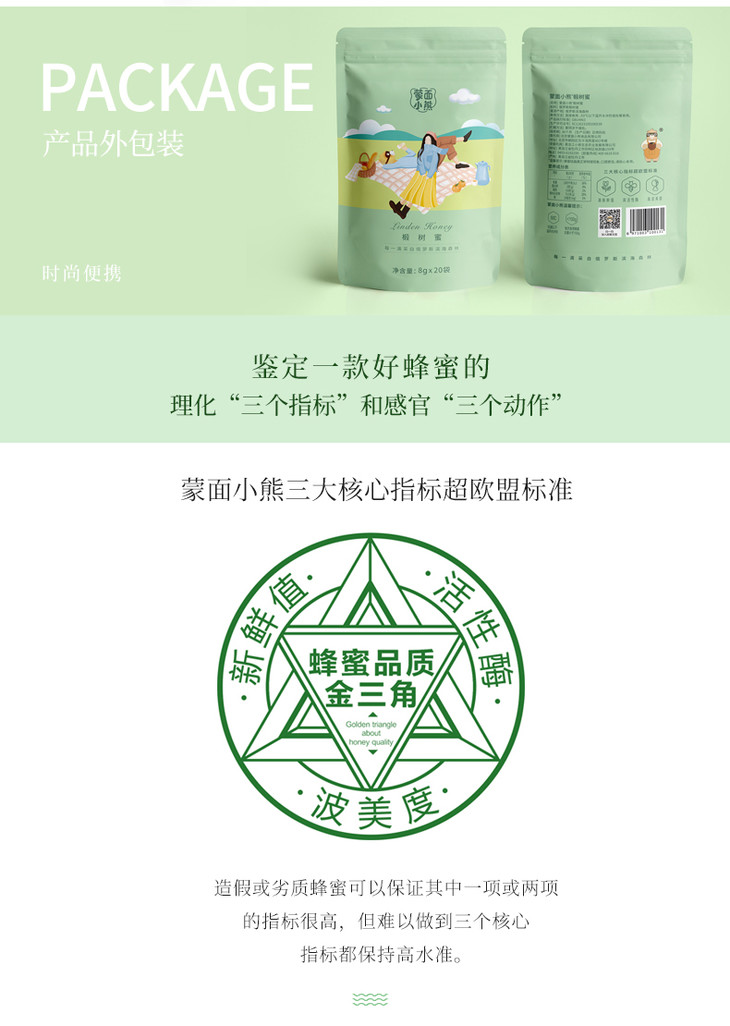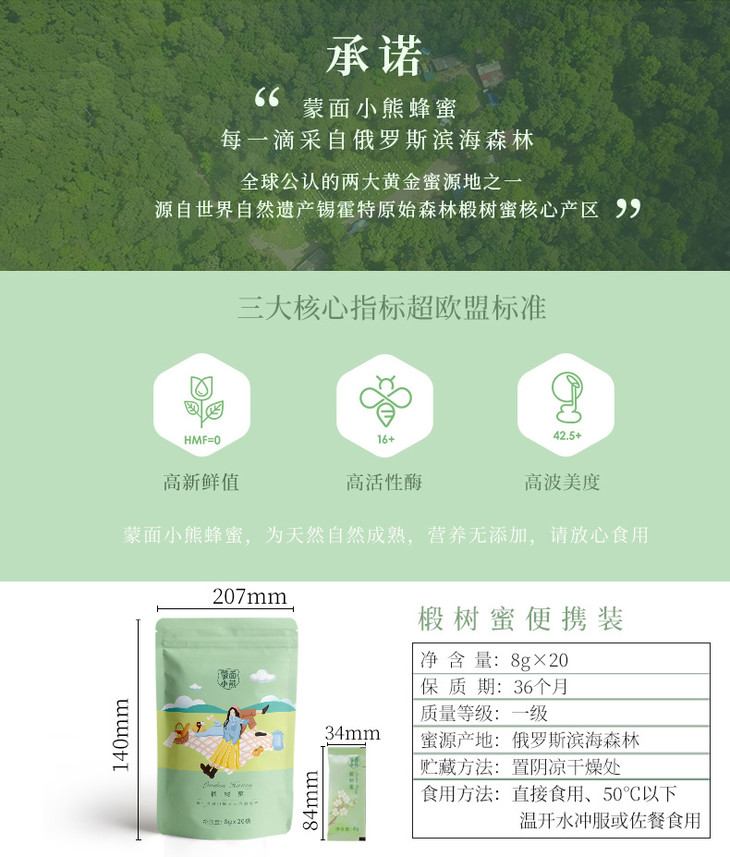 【蒙面小熊】蒙面小熊俄罗斯进口蜜源蜂蜜小包装便携袋装真蜂蜜椴树蜜8g*20