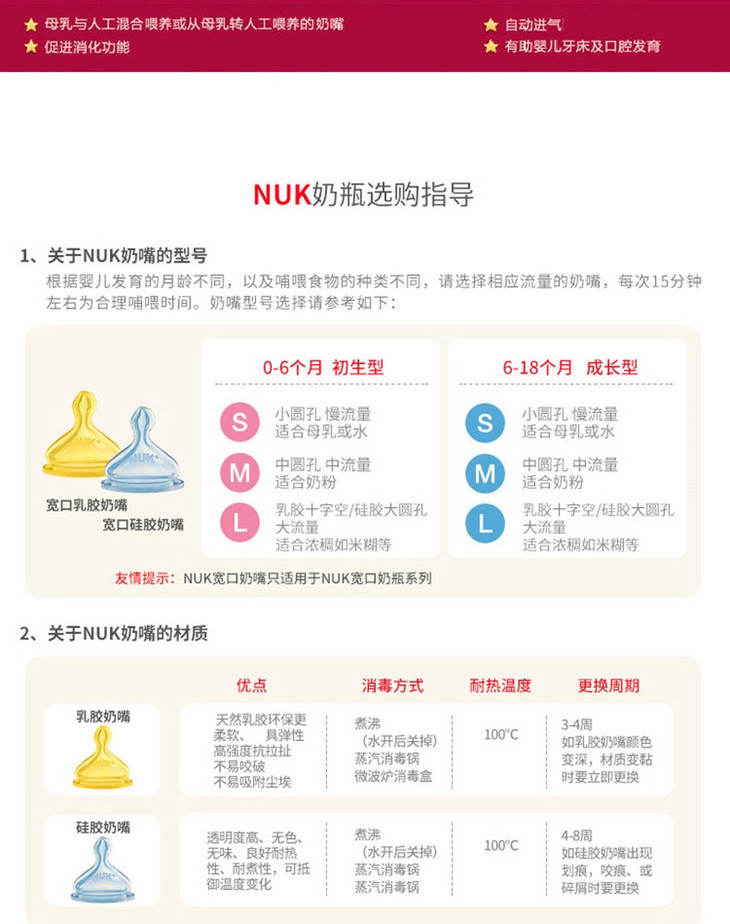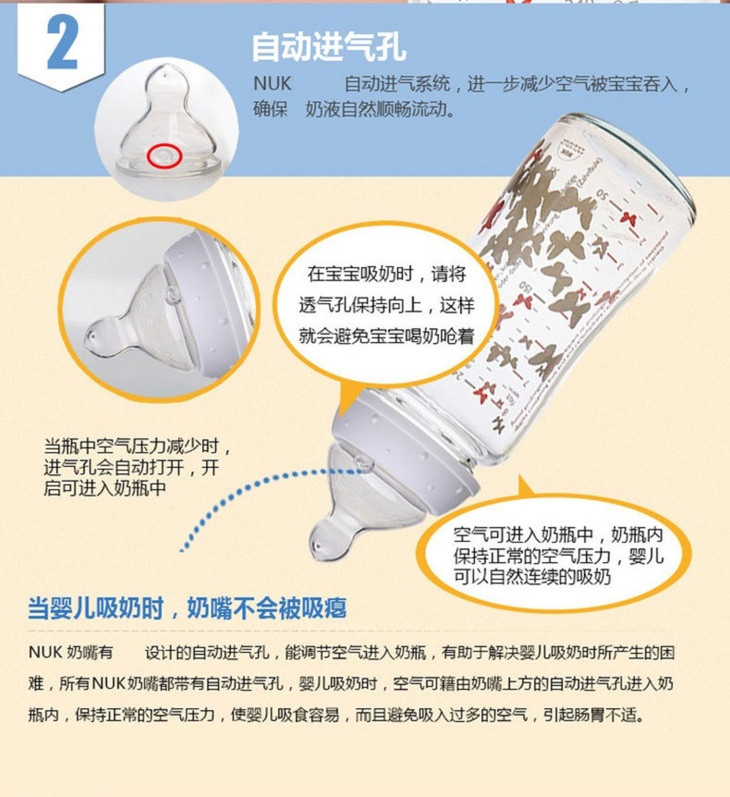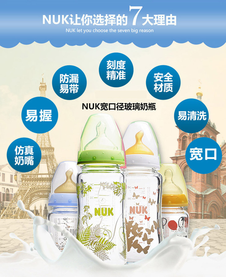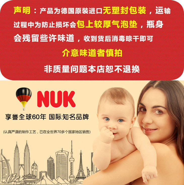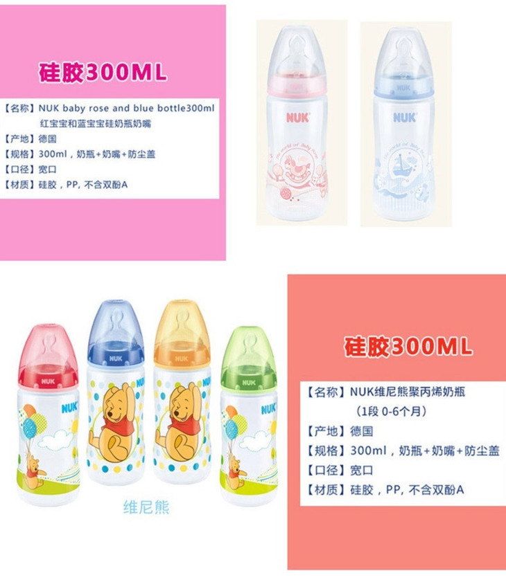 【保税仓】NUK 多色新生儿宽口径防胀气PP奶瓶 6-18个月(颜色随机发) 300ml