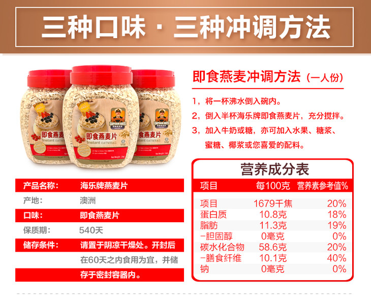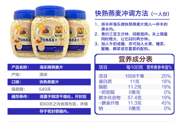 马来西亚海乐牌大燕麦片1kg