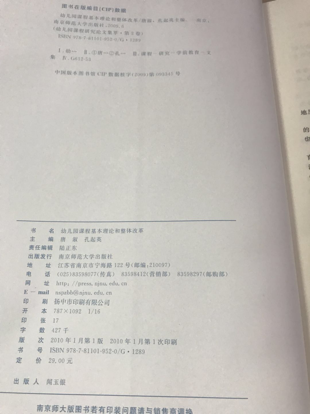 幼儿园课程基本理论和整体改革 南京师范大学出版社