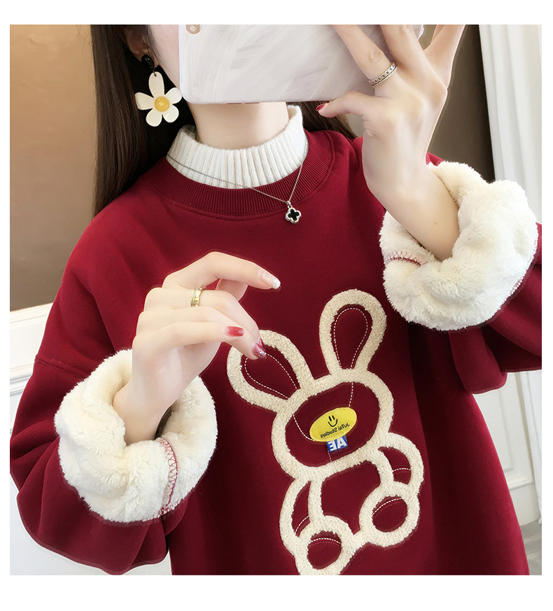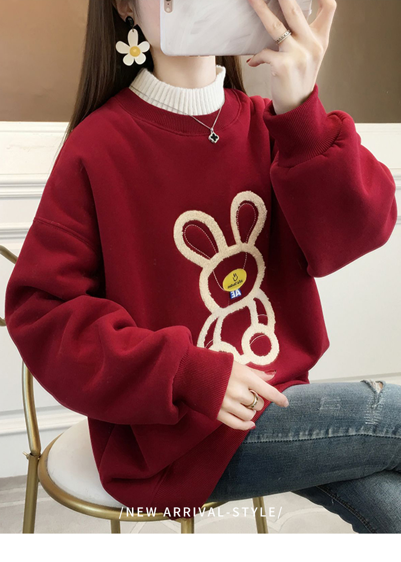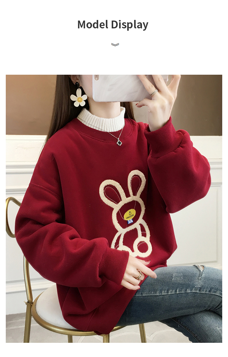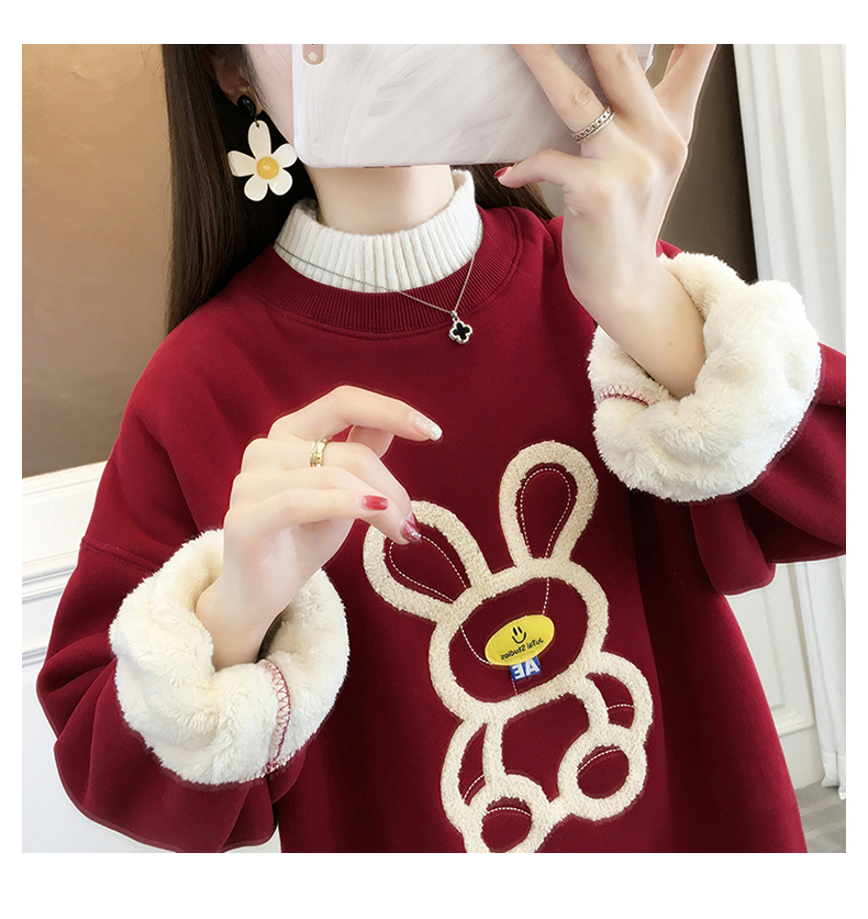 加绒保暖假两件卫衣女,新款兔年红色一体绒上衣HR-KFG2G006