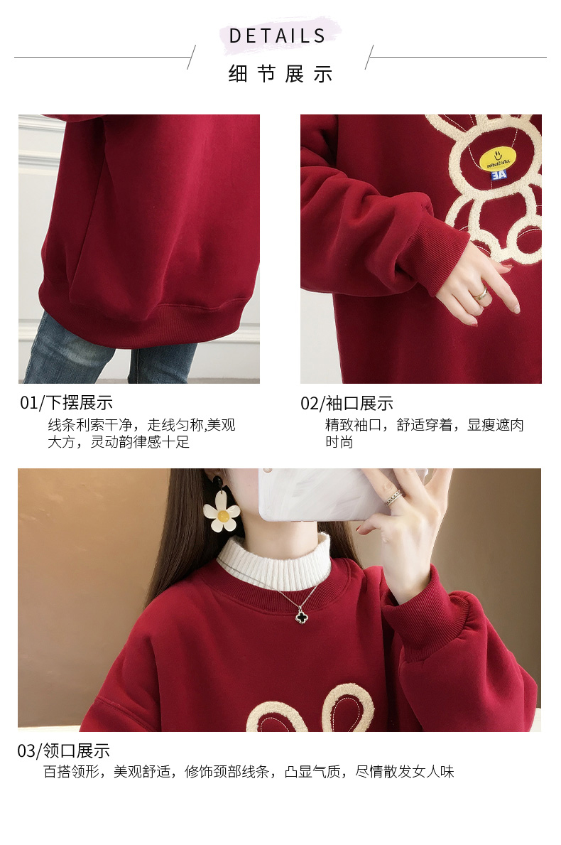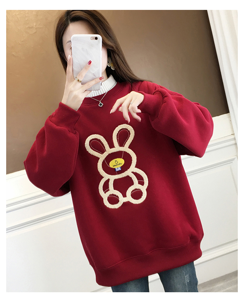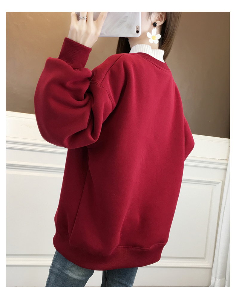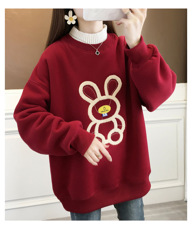 加绒保暖假两件卫衣女,新款兔年红色一体绒上衣HR-KFG2G006